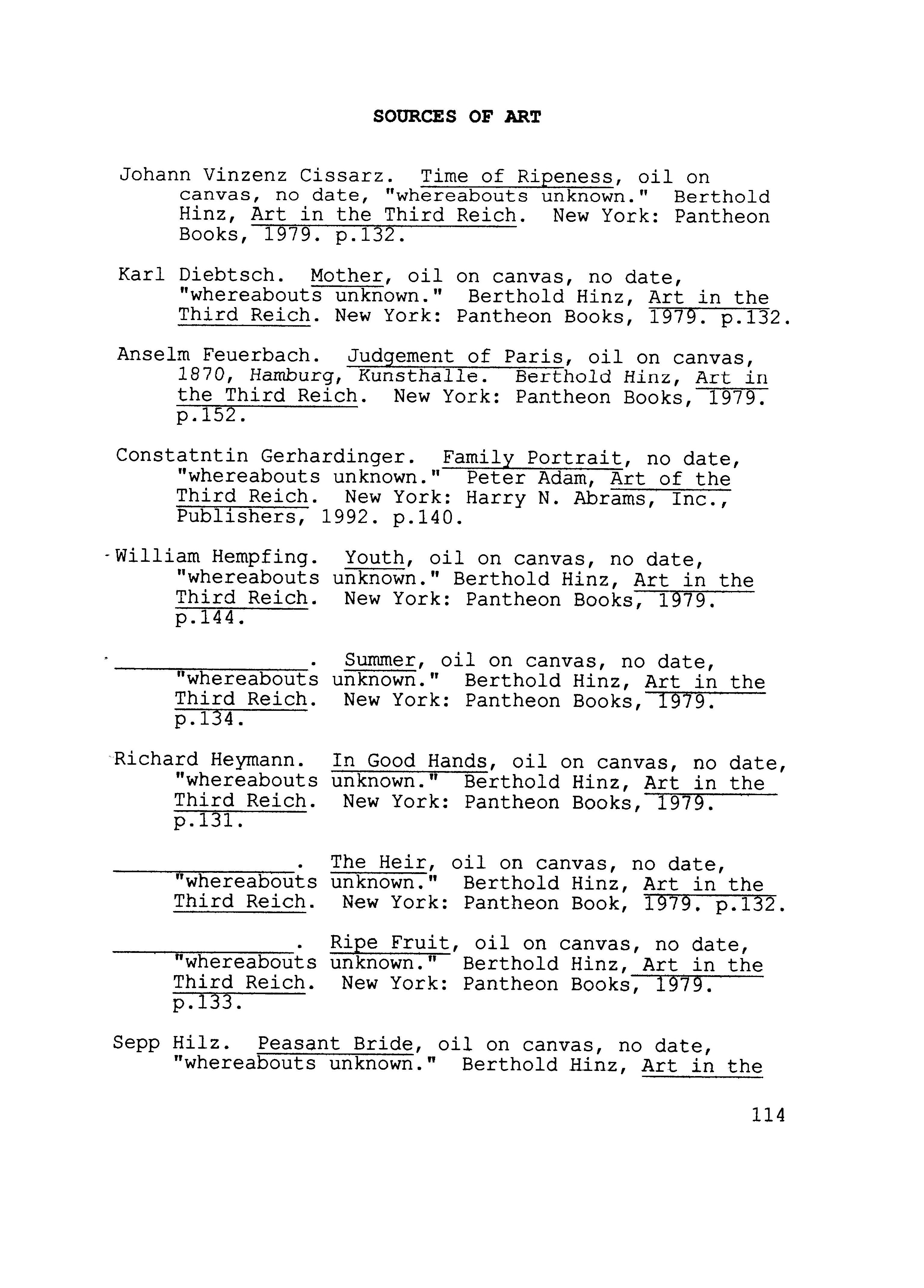 . The Three Graces, oil on canvas, no unknown." Berthold Hinz, Art in the Third Reich. New York: Pantheon Books, 1979. p.143.