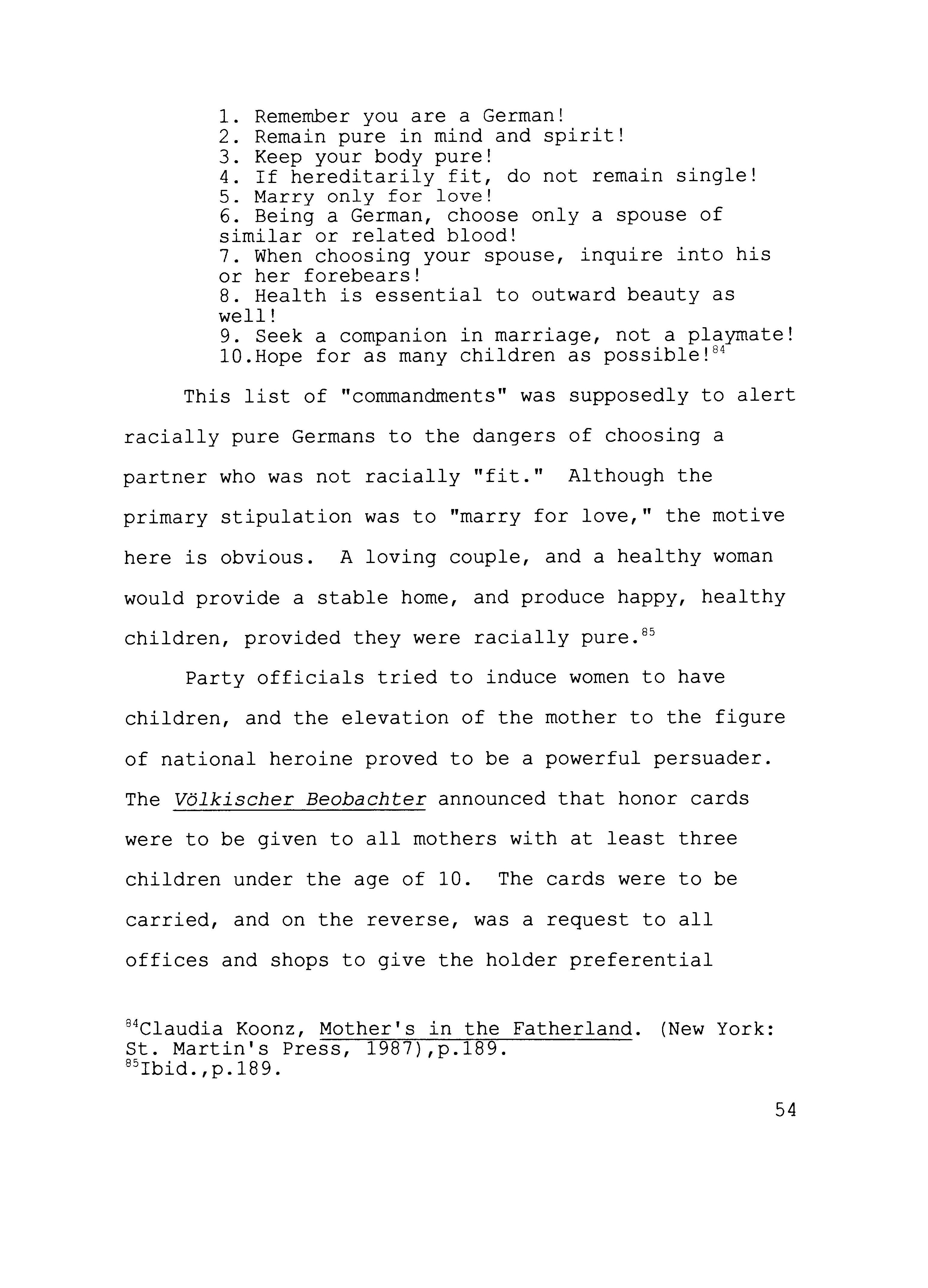 Koonz, Claudia. Mothers in the Fatherland, women the family and Nazi politics. New York: St. Martin's Press, 1987.