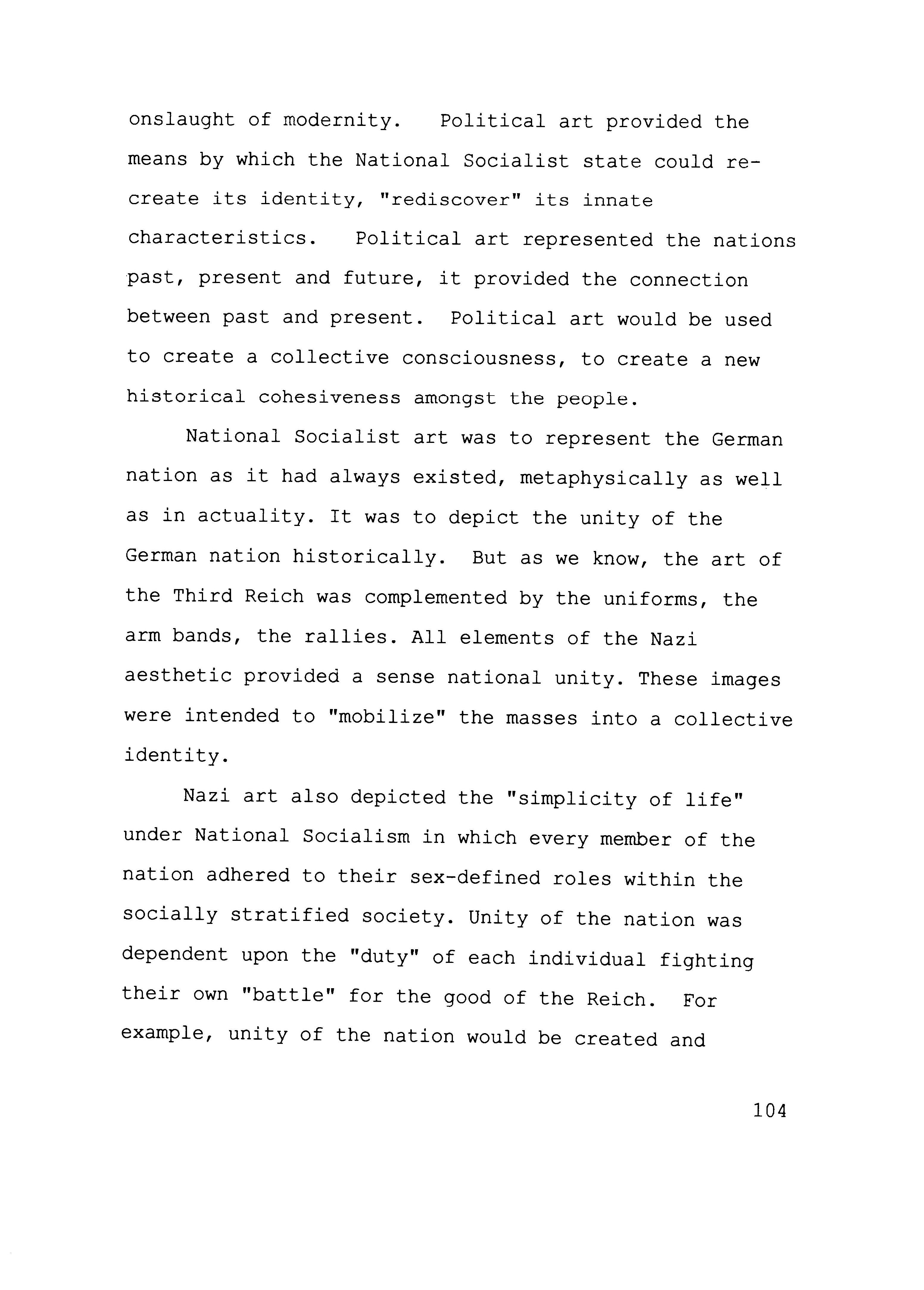 Political art provided the Nazi state, the historical legitimization the government needed. It provided the means by which the state could be visually validated, politically, and historically.