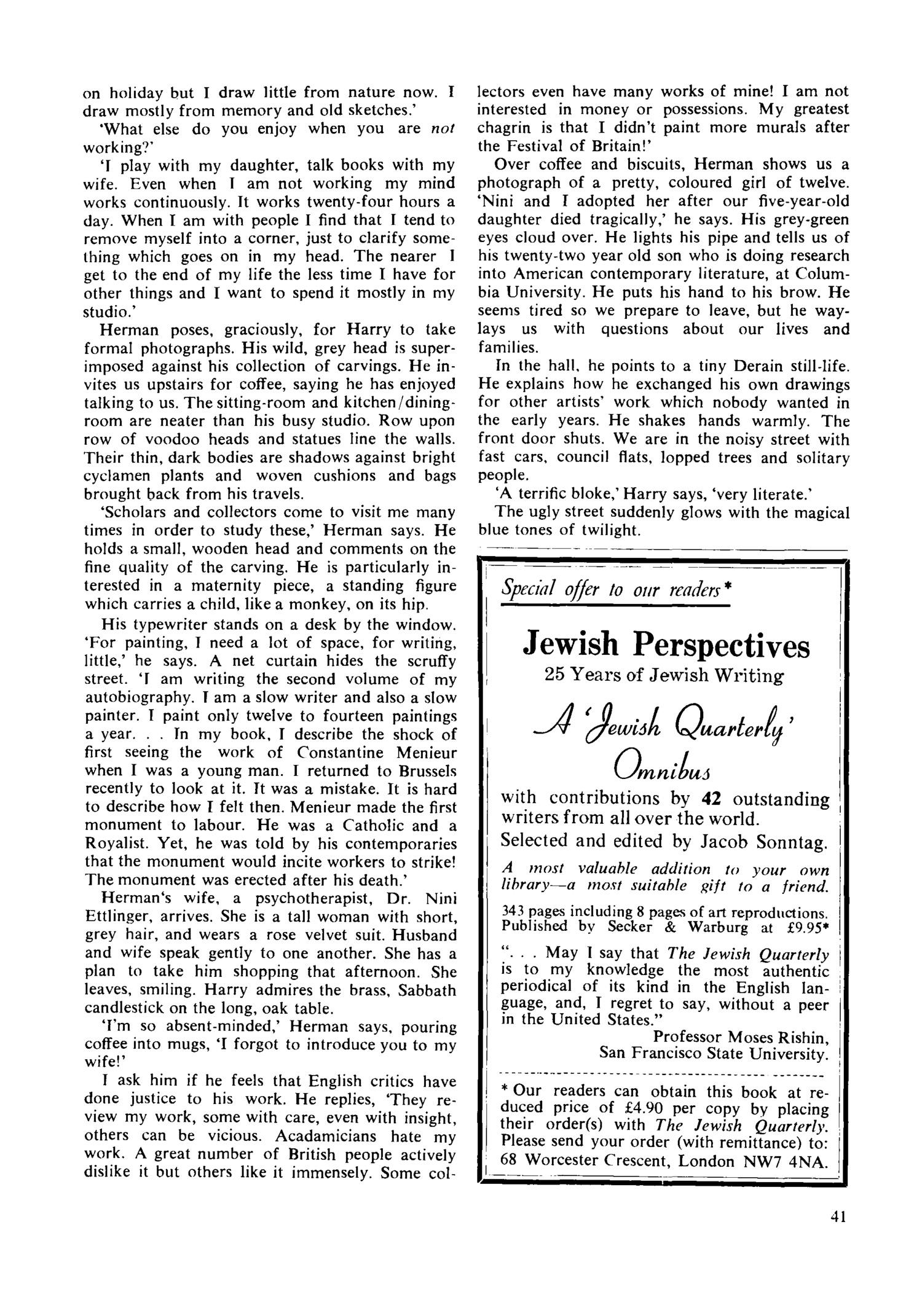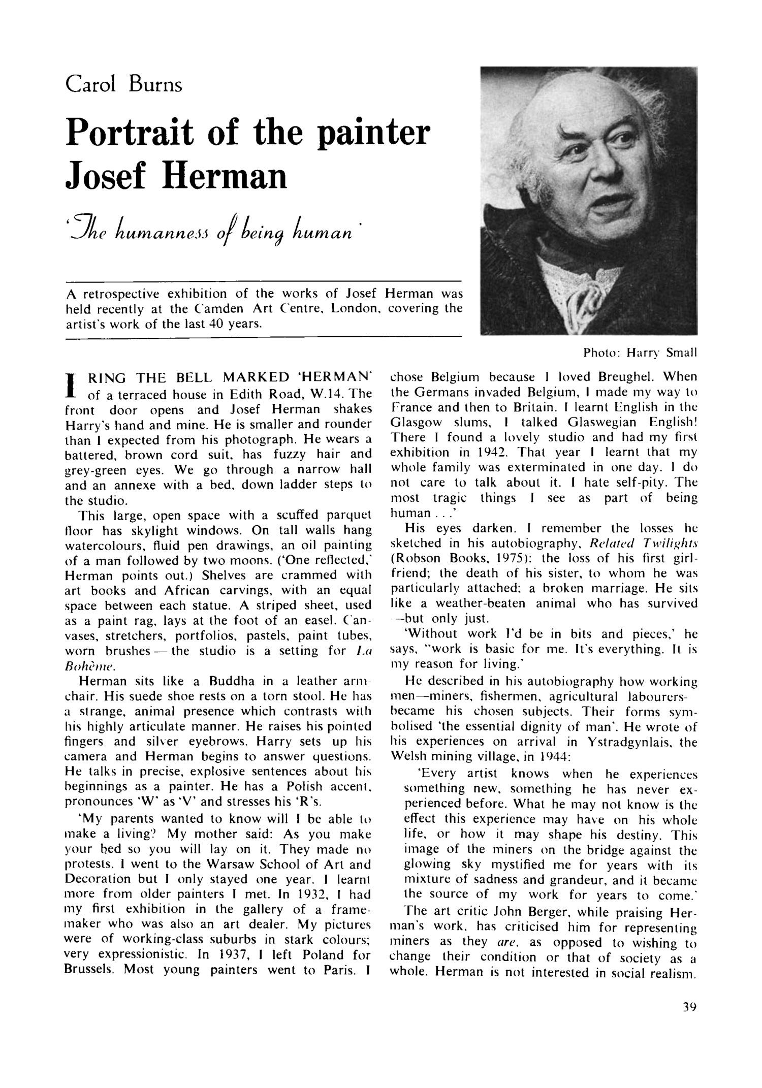 Spring 1980 - Portrait of the Painter Josef Herman by Carol Burns