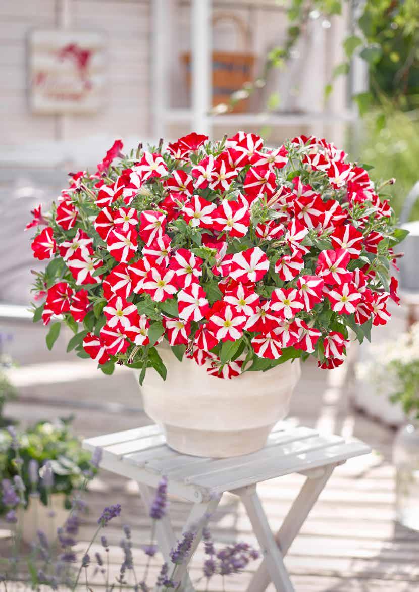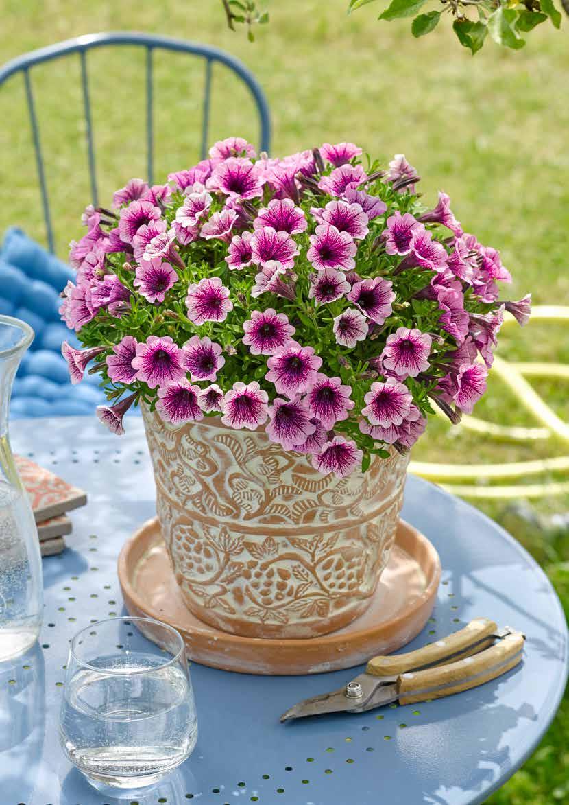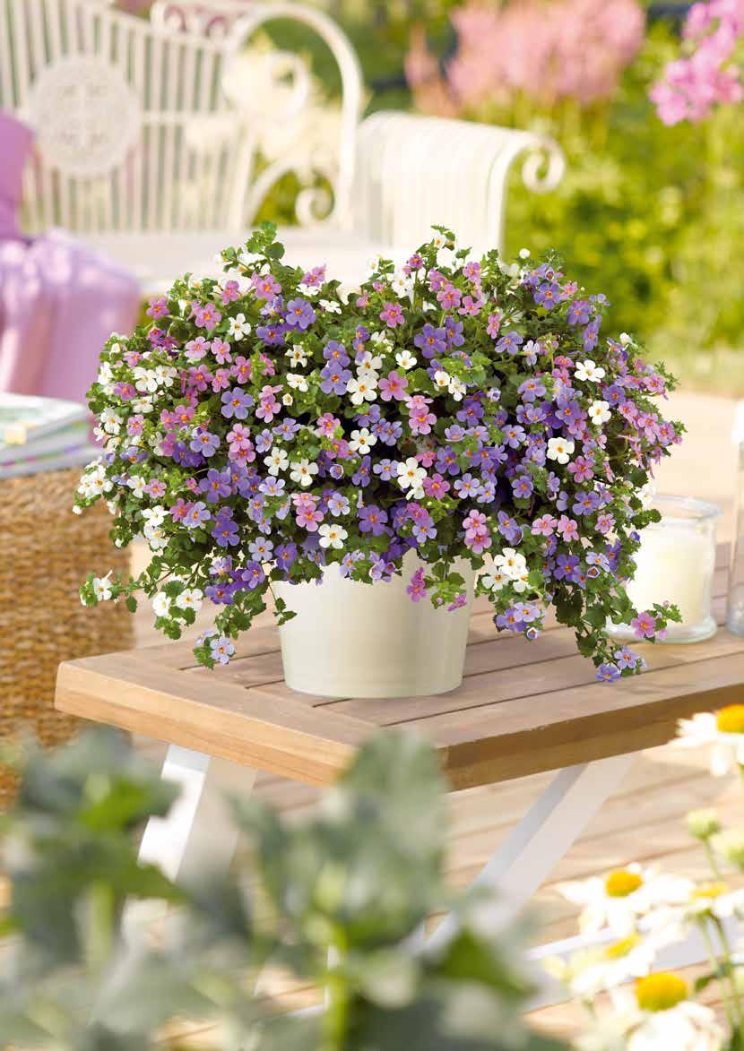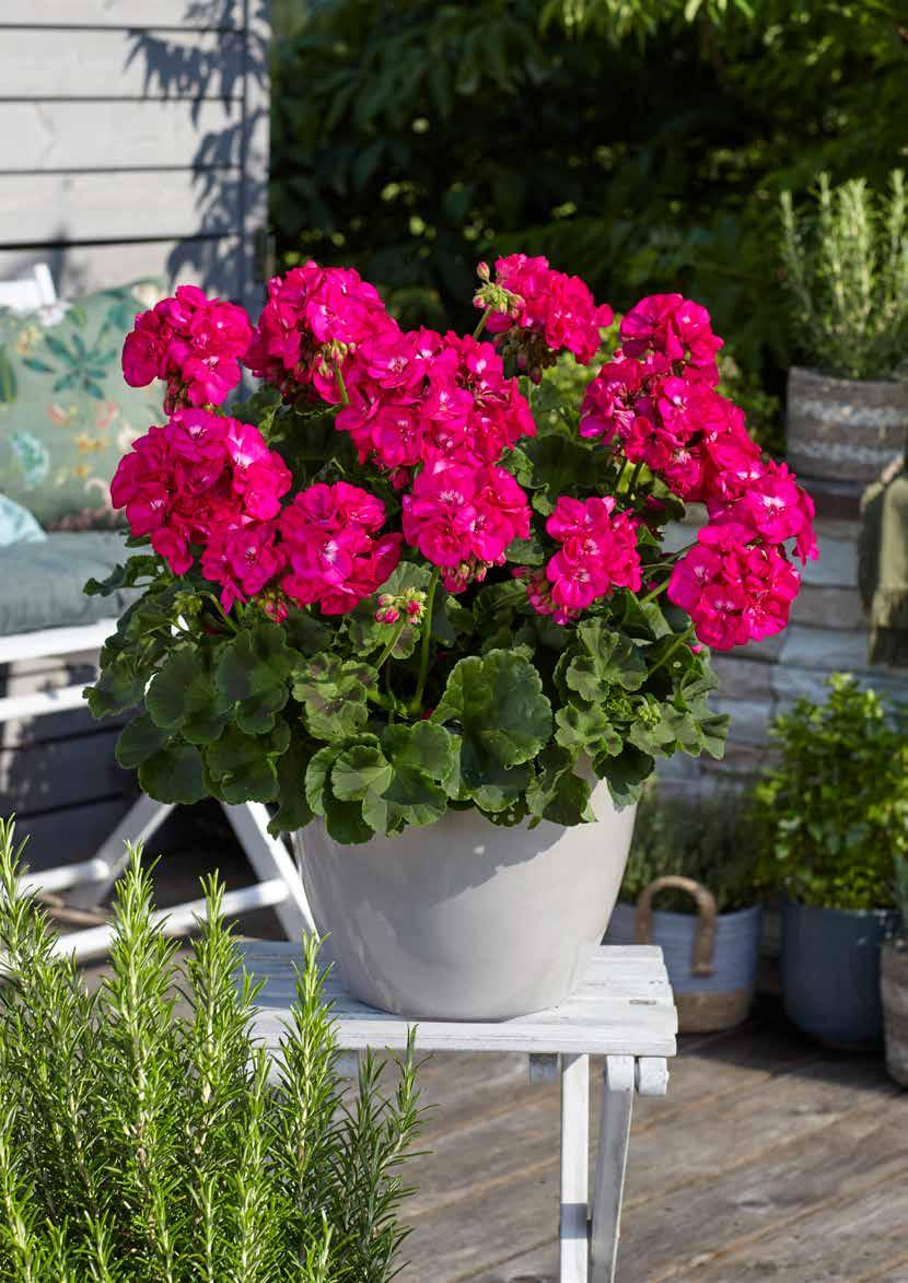 Wir suchen für Sie Pflanzen mit kompaktem Wuchs und guter Verzweigung sowie besonders großen Blüten, welche zuverlässig und reichhaltig blühen. We have chosen plants for you of a compact growth and good ramification as well as especially large blossoms of a long-lasting bloom.