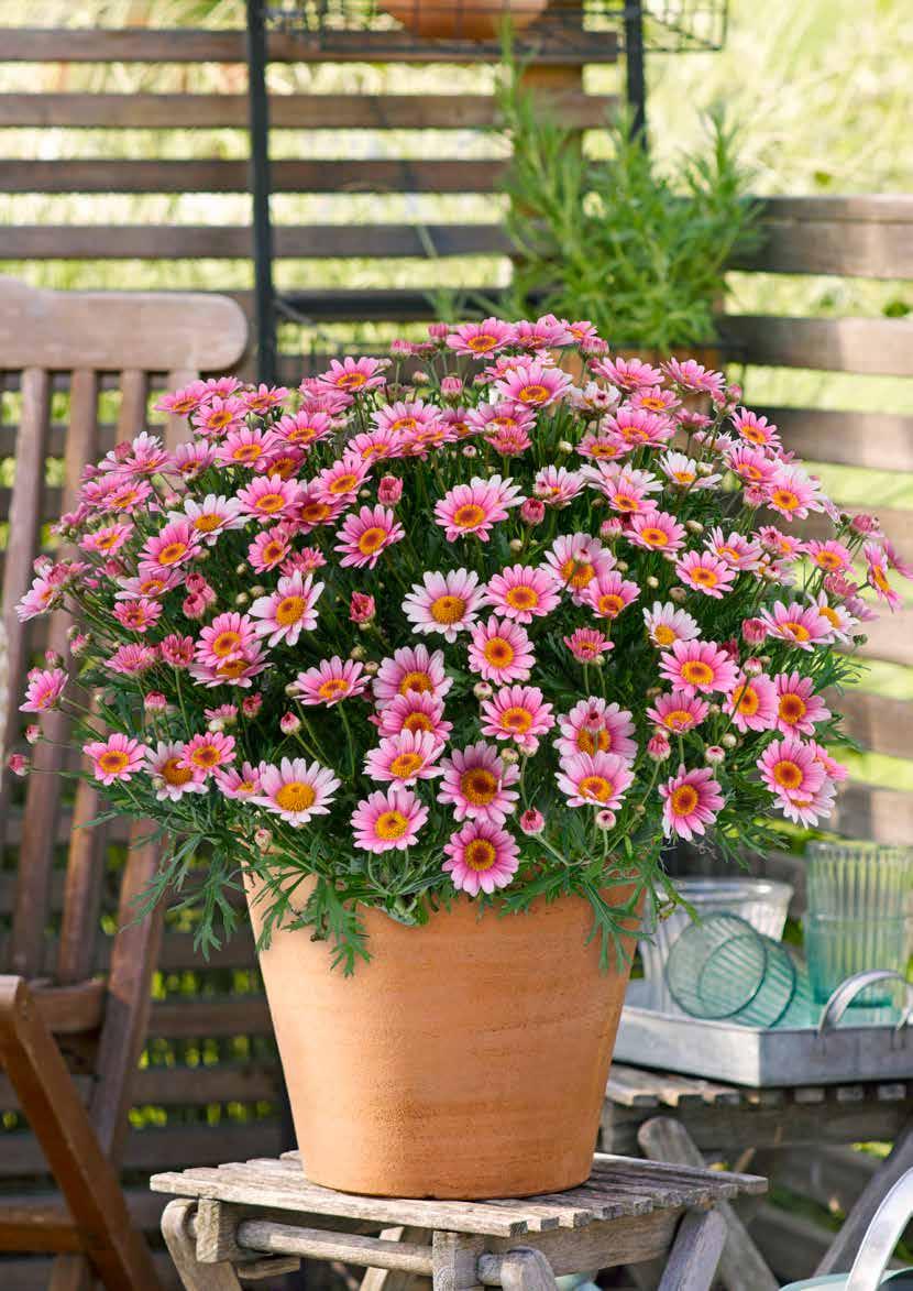 Our choice for you fell on a argyranthemum of bushy growth, early blossom and a long-lasting bloom.