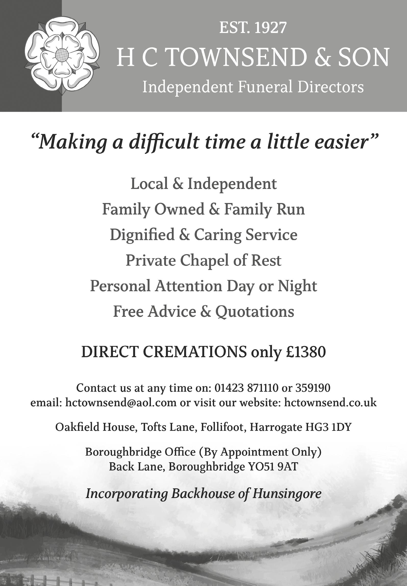 Burial and Cremation Services (Harrogate Borough Council) will give you advice and support if you wish to arrange your own service or ceremony.
