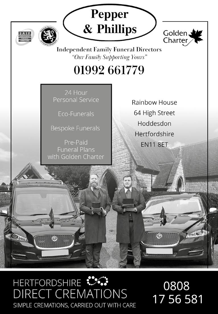 Bereavement Assistant 01438 284634 an answer phone is available.