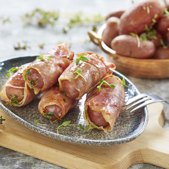 Timianpoteter rullet i spekeskinke er smakfullt lite innslag som føles både nytt og kjent på samme tid. Dette er en perfekt rett å ta med på spleiselag, og kan serveres lunt eller romtemperert. Og best av alt? Det er lekende lett å lage.