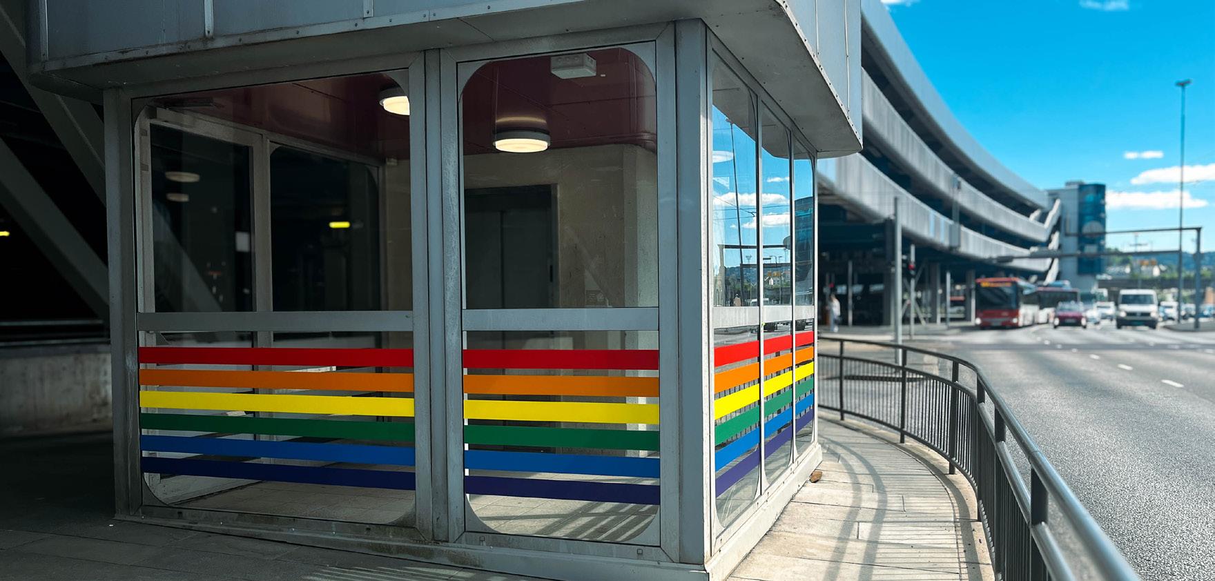 For å synliggjøre sitt bidrag til mer inkludering, tok Bergen Parkering et fargerikt grep våren 2024: publikumsinngangene til ByGarasjen, GriegGarasjen og KlosterGarasjen ble foliert i regnbuens farger.