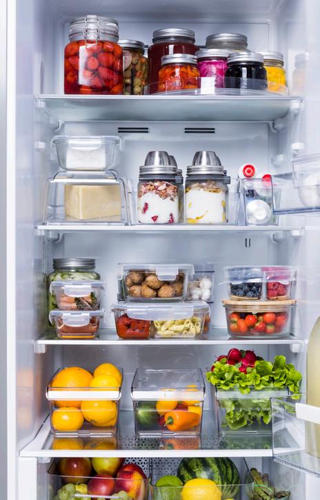 Reduser husholdningens matsvinn. Visste du at hver person i gjennomsnitt kaster 40 kilo mat i året? Og det som troner listen over hva vi oftest kaster er middagsrester og frukt. Ved å organisere kjøleskapet med riktig innredning, kan du forlenge holdbarheten på for eksempel frukt og grønt. Kjøper du også et par gode oppbevaringsbokser med lokk er det enklere å ta vare på middagsrester, slik at du kan nyte en god restelunsj dagen etterpå. Både Kitchn og Clas Ohlson har mange gode løsninger for kjøleskapsoppbevaring.