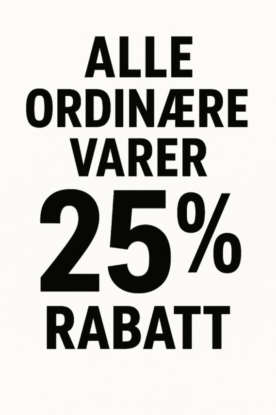 *Gjelder alle varer i butikken på ett kjøp. Kan ikke kombineres med andre tilbud.