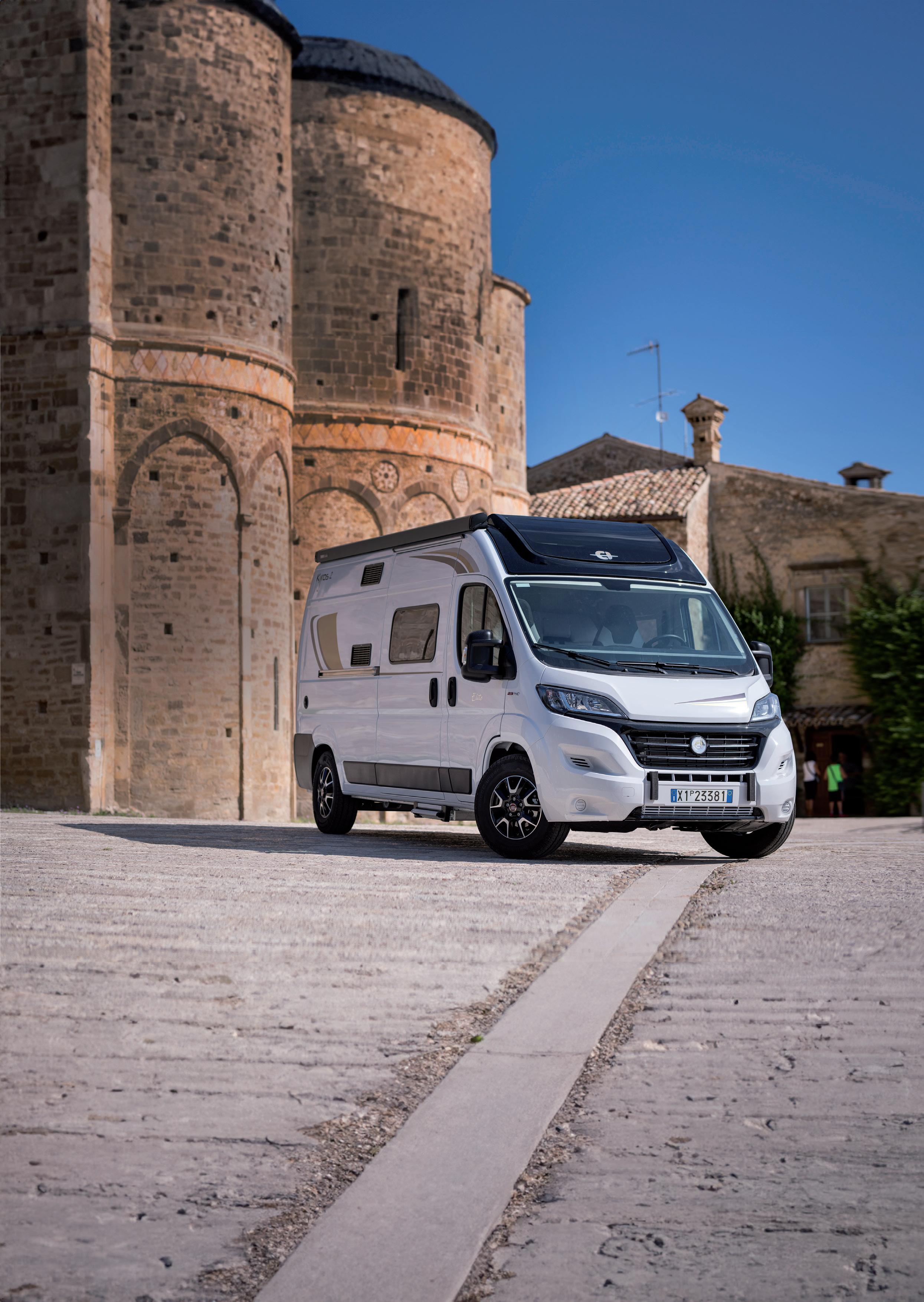 S= standard O=optional CHASSIS MECHANICAL UNIT FIAT DUCATO ENGINE 2.2 MJ POWER 140 HK HD MAXIMUM TECHNICALLY PERMISSIBLE WEIGHT (KG) 3500 WEIGHT UNLADEN IN RUNNING CONDITIONS MIN / MAX (KG) 2905 / 3165 ADDITIONAL EQUIPMENT (KG) 48 WHEELBASE (MM) 4035 MAXIMUM TOWABLE WEIGHT (KG) 2500 ALUMINIUM WHEELS DIMENSIONS 16" MANUAL AIR CONDITIONING S DRIVER AND PASSENGER AIRBAG S / S CRUISE CONTROL WITH SPEED LIMITER S ABS / ESC S / S SWIVELLING DRIVER' AND PASSENGER'S SEAT S CAB SEAT COVERS S PAINTED CAB WHITE PLEATED CAB CURTAIN S DAB USB BLUETOOTH RADIO 9'' WITH ANDROID AUTO / APPLE CARPLAY S REAR VIEW CAMERA S DIMENSIONS AND PLACES BERTHS 2 (+1) REAR BED (CM) 1950 X 800 - 1860 X 800 SUPPLEMENTARY BED IN DINETTE S DIMENSIONS SUPPLEMENTARY BED IN DINETTE (CM) 1560 X 950(500) BEDS WITH STAVES S SKYLIGHT PANORAMIC SKYLIGHT 700X500 MM WITH BLIND AND MOSQUITO NET S 400X400 MM SKYLIGHT S FIXED, PANORAMA ROOF IN THE CAB O OPENABLE REAR WINDOWS S DOUBLE-GLAZED WINDOWS WITH BLIND / MOSQUITO NET S INSTALLATIONS BURNERS 2 TANK CAPACITY : CLEAR WATER / WASTEWATER (L) 85(20) / 90 COMPRESSOR FRIDGE (L) 84 STANDARD HEATING SYSTEM TRUMA COMBI DIESEL HEATER 6D+E SPACE FOR 2 GAS BOTTLES (TOT. MAX 7 KG) S BATHROOM WINDOW (DOUBLE OPAQUE GLASS) S INTERNAL INSULATION MATERIAL POLYESTER FIBER AND ALUMINIUM FLOOR THICKNESS MIN / MAX (MM) 36 EQUIPMENTS LIFTING ROOF WITH INTEGRATED DOUBLE BED O STOWAGE ABOVE THE CABIN / OPEN SPACE CABIN - / S CAB CARPET S TABLE EXTENSIONS IN DINETTE S FOLDING TABLE S STORAGE UNDER THE DINETTE TABLE S ENTRANCE DOOR FLYSCREEN S ELECTRIC STEP S SOLAR PANEL S AWNING S BLACK FRONT GRILLE, BLACK SKID PLATE, BLACK HEADLIGHT SURROUND S TECHNO TRIM S LEATHER STEERING WHEEL AND KNOB S INTERNAL LED LIGHTENING S EXTERIORS EXTERNAL LED LIGHT S 4 2+1 4