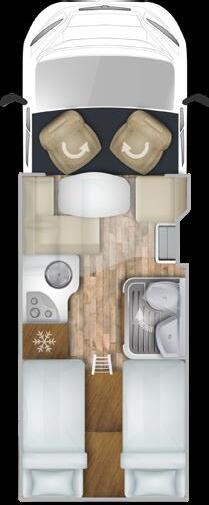 • Pack Comfort: Överdragsklädsel stolar förarhus, Midi Heki (70x50 cm), Insektsnät vid skjutdörr, Elektriskt trappsteg, Remi frontgardin förarhus