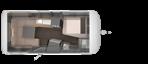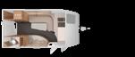 SÜDWIND 500 FU. En äkta klassiker som integreras extra platseffektivt i planlösningen. Den platseffektiva placeringen av säng och badrum bredvid varandra ger en trivsam inomhusyta.