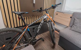 DESEO 400 TR. För alla som bara vill ta med en motorcykel och inte vill avstå från den bekväma bäddsoffan kan även standardutförandet utökas med en motorcykelhållare. En särskilt praktisk detalj: Det mångsidiga bordet kan du tack vare den lätta och tåliga aluminiumramen även använda utomhus.