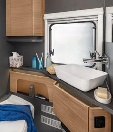 SÜDWIND 540 UE. Med perfekt integrerat tvättställ med förlängd uppställningsyta och praktisk bänktoalett.