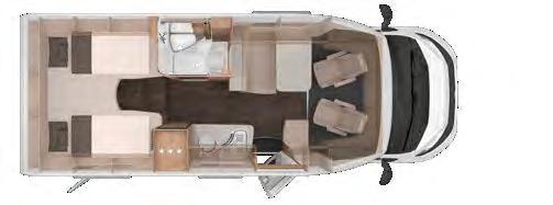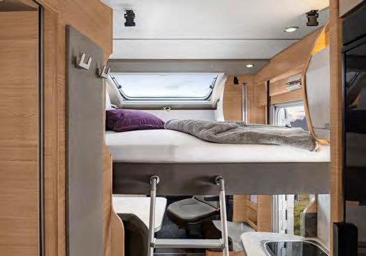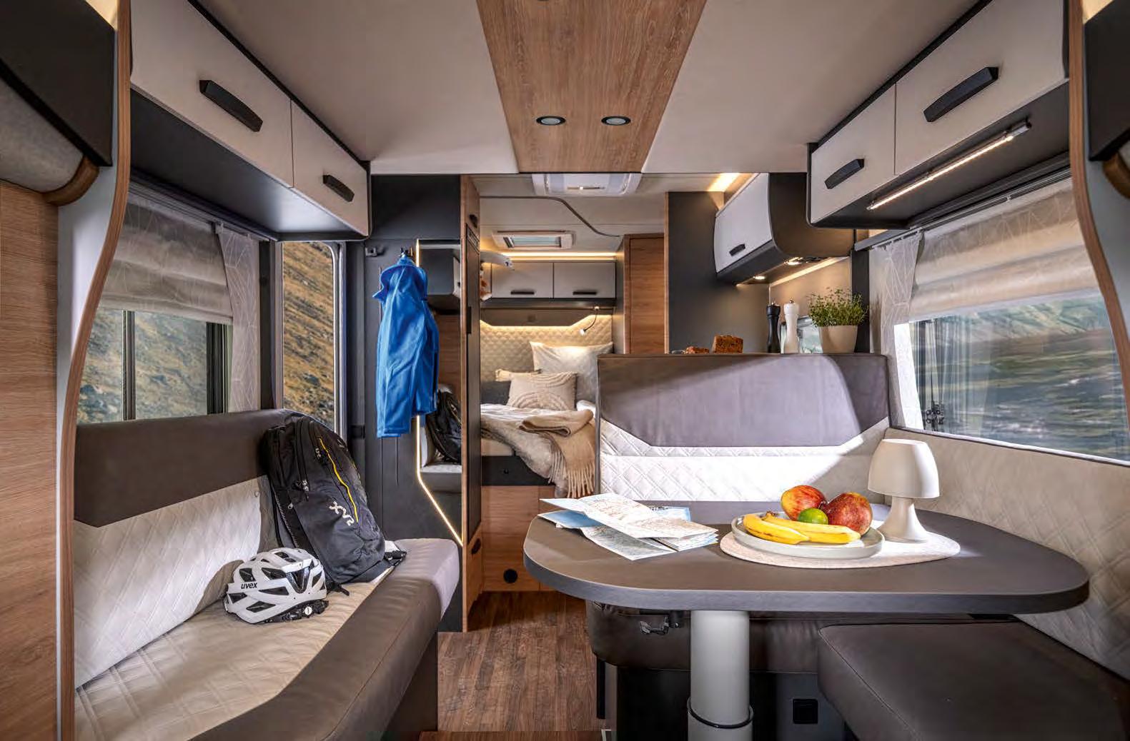 Detta ger ett personligt och elegant utseende. Förutom med designen, samlar de helintegrerade dessutom poäng på praktiska detaljer, som en uppfällbar säng fram – helt utan alkovtak och med mycket plats.