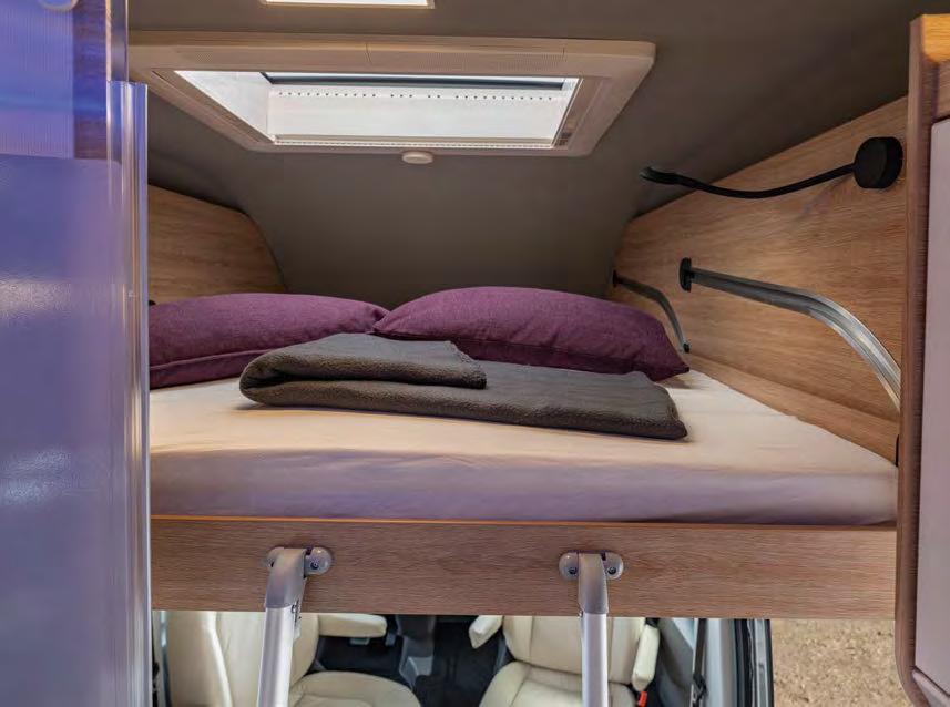 CUV 500 MQ. Med tillvalet slide-säng kan du enkelt få upp till två extra sovplatser fordonets främre del. Vilket ger tillräckligt med plats för hela familjen.