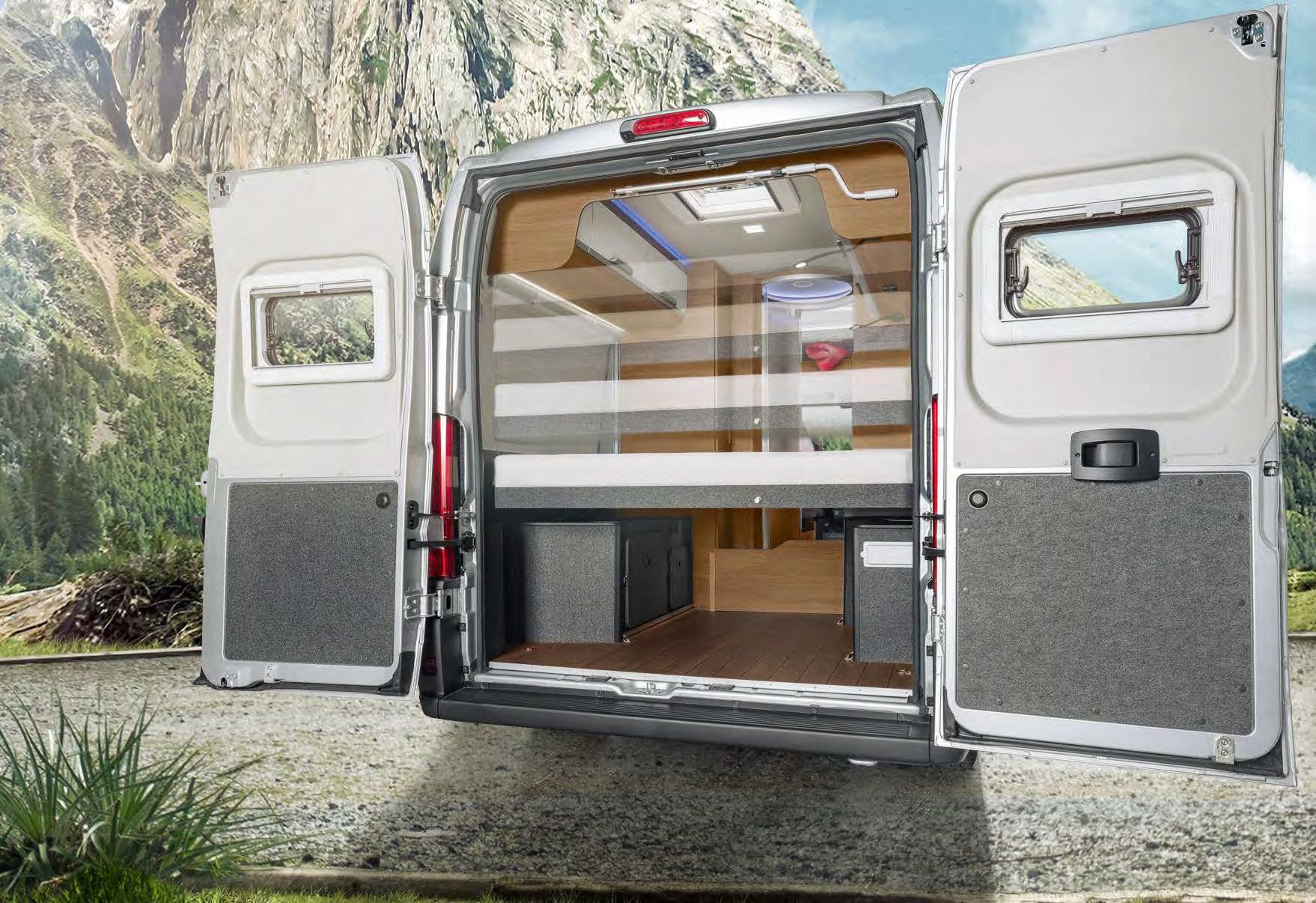 BOXLIFE PRO 600 STREET. I den rymliga tvärställda sängen sover man inte bara riktigt bra, man kan också njuta av en underbar utsikt när man öppnar bakdörrarna. en-suite-badrum