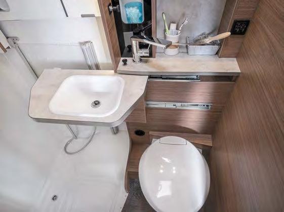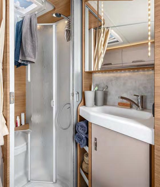BOXDRIVE 600 XL. 2 blir 1: Efter behov erbjuder svängbadrummet en rymlig duschkabin eller en rymlig tvättdel.