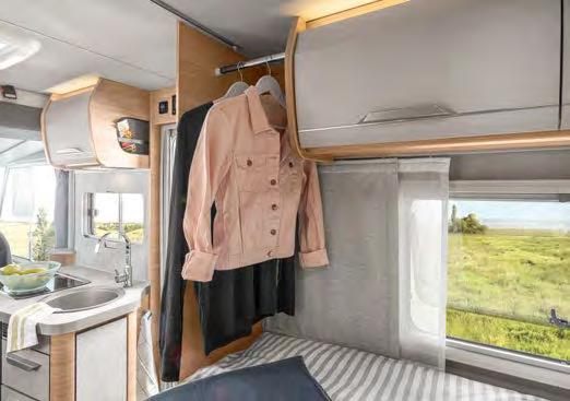 BOXDRIVE 600 XL. På den praktiska klädstången mellan badrummet och sängdelen kan man förvara skjortor skrynkelfritt.