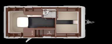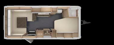 När man betraktar bodelen blir man särskilt uppmärksam på den imponerande höjden hos sängarna i SENARA 460 E. Med hjälp av trappsteg och den genomtänkta placeringen av badrummet, tillsammans med de separata möbelelementen, skapas en tydlig avgränsning och en privat känsla i sovdelen. Sängens höjd erbjuder en praktisk fördel genom att skapa förvaringsutrymme för diverse packning och större föremål. TABBERT bevarar den karakteristiska, generösa känslan av rymd genom att använda plattare överskåp över huvudänden och centralt placerade ljuskällor.
