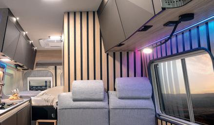 BoMed sin smakfulla interiör definierar X-PEDTION mobilt boende på sitt alldeles egna sätt. Upptäck den sofistikerade ljusdesignen, den genomtänkta dinetten och många andra praktiska funktioner som kombinerar funktionalitet med maximal komfort och en touch av äventyr.