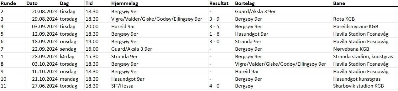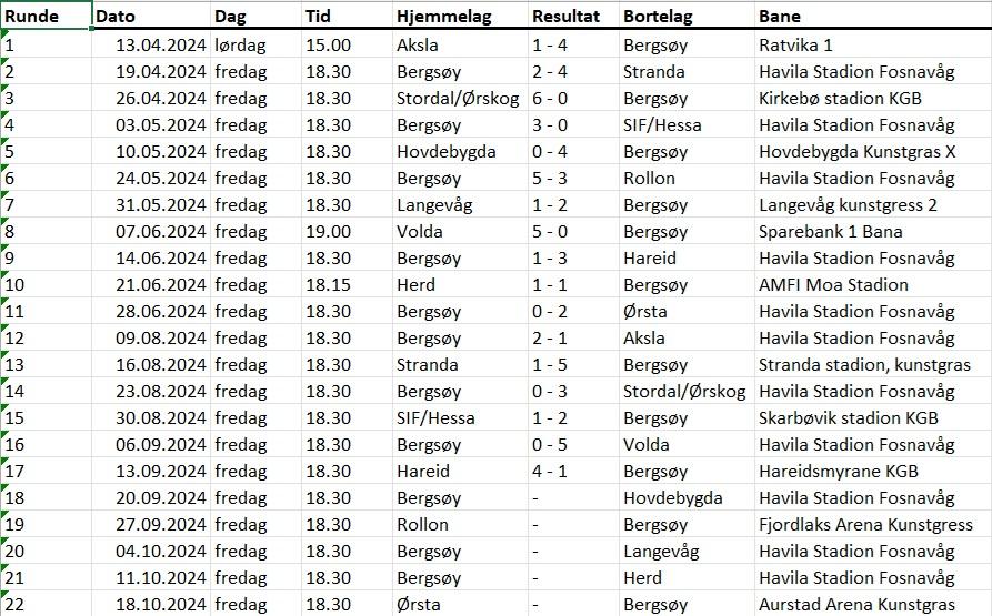 64 år uten heimetap mot Hovdebygda, og 9 strake heimesigerar er ein god statistikk for Bergsøy sin del. Ifjor vann Bergsøy tilsvarande kamp med 2-1 etter mål av Sondre Nygård Olsen og Enrique Crespo Søvik.