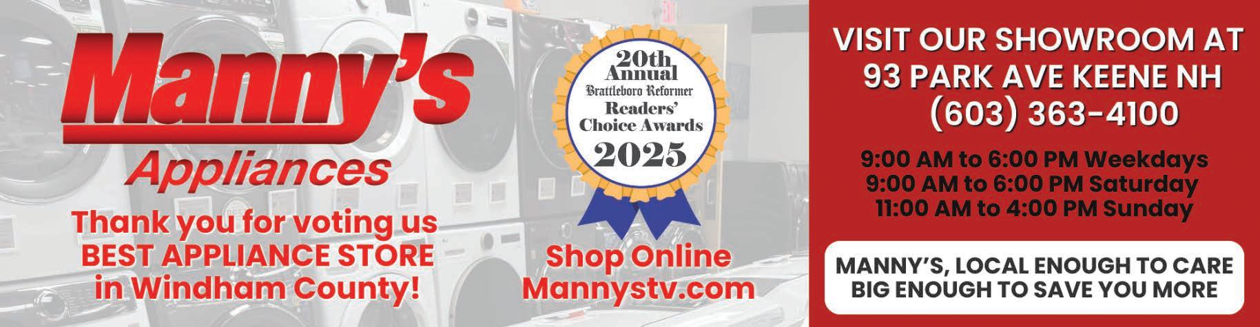 93 Park Ave., Keene, NH 603-363-4100 mannystv.com