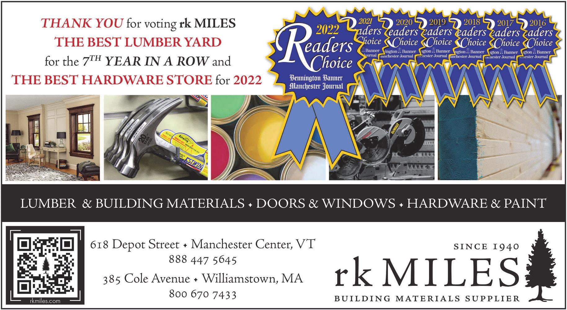 See Best Hardware 618 Depot St., Manchester Center 802-362-1952 • rkmiles.com
