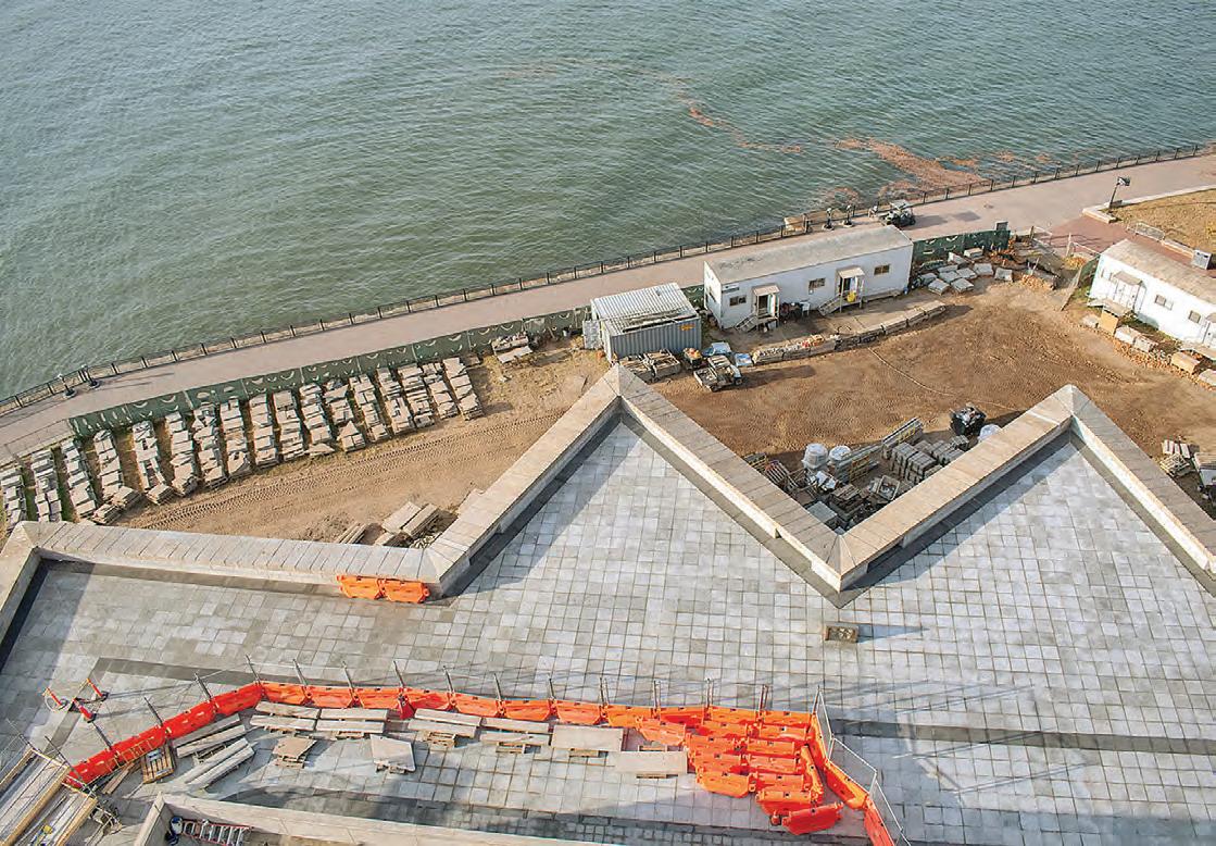 While most of the rebuilding work was done during the warmer nine months of the year, Mucci noted, pavers in heated tents on the island allowed production to continue during the winter.