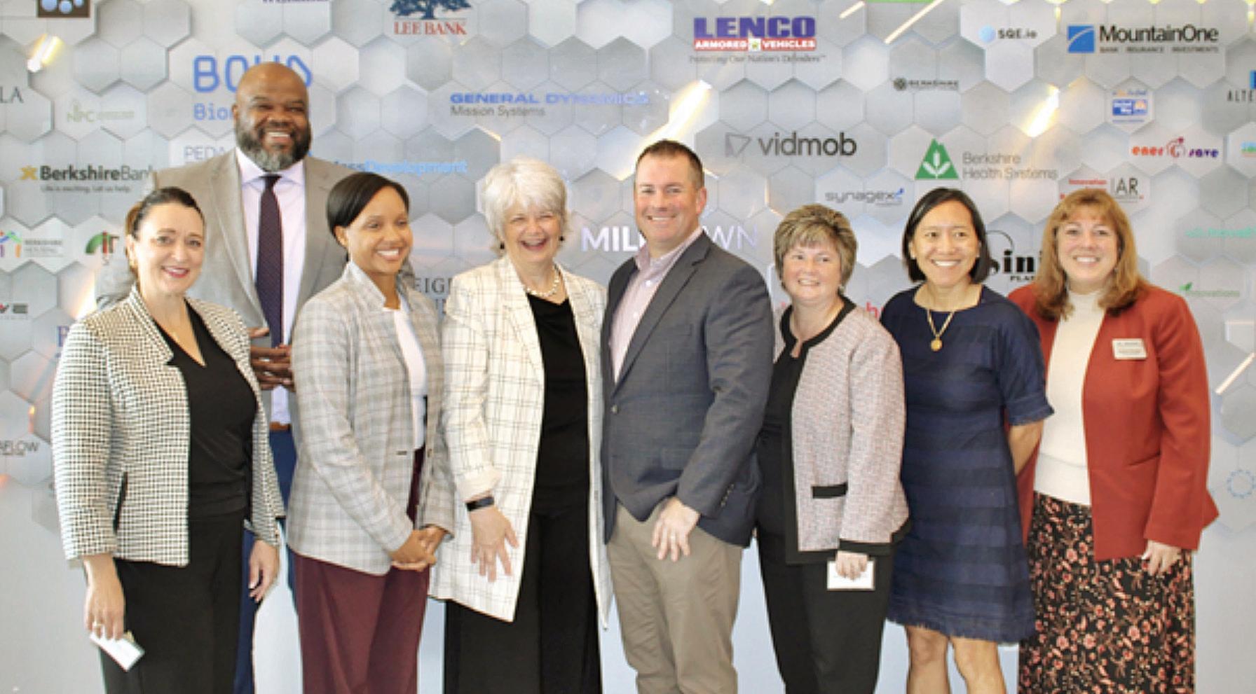 Pittsfield Mayor Linda M. Tyer; Secretary of Education Patrick Tutwiler; Secretary of Labor and Workforce Development Lauren Jones; Berkshire Community College President Ellen Kennedy; 1Berkshire President and CEO Jonathan Butler; North Adams Mayor Jennifer Macksey; Secretary of Economic Development & Housing Yvonne Hao; and MassHire Berkshire Workforce Board Executive Director Heather Boulger.