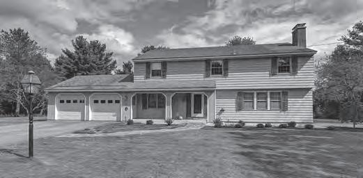 Split-levelhomelocatedjust outsideoftown,distance views,2-carattachedgarage, masterbedroom/bathroomup withcathedralceilings,three bedroomsandabathdown, updatedoakcabinetkitchen, diningroom,sunroom,some wood oors.$207,000 CallCharlesat413-358-5524