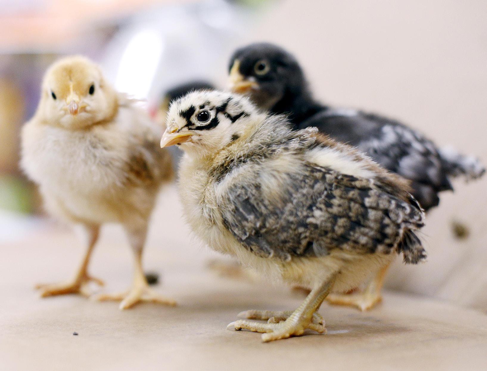 Two-week-old baby chickens pose for the camera at the Great Barrington Agway.