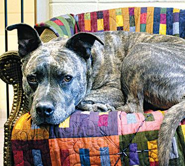 This stoic, yet happy fellow is Morty. Morty is a 9-year-old Staffordshire bull terrier mix. He arrived back at Berkshire Humane Society after many years in a loving home due to his owner having health issues. Morty is reliably house trained as well as crate trained. He prefers to have nice, cozy blankets in his crate so he can make a nest, and he loves to lounge on the furniture as well. He’s just a good boy who enjoys the finer things in life! Morty lived with a female dog years ago, and may be OK to do so again. But no small pets for this gentleman please. Morty is incredibly affectionate and loves relaxing with the shelter kennel staff. He’d love a home where he can spend his golden years taking leisurely walks and snuggling on the couch. If you think Morty may be the perfect fit for you, please reach out to the Berkshire Humane Society kennel staff at (413)-447-7878 ext. 126 for more information. Morty’s adoption fee has been graciously sponsored by the Danny Boy Adoption Fund.