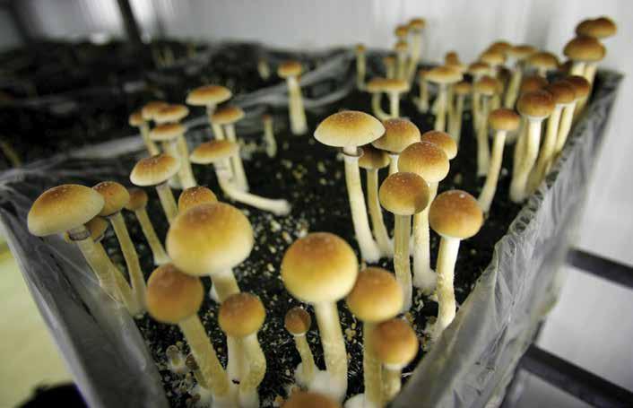 social anxiety himself. While I watch his TED Talk on my laptop, there are awkward pauses in his speech that make it hard to tell whether he’s terrified of public speaking or just burnt out from his own supply. Doblin has researched psychedelics since the 1980s, and explains that, unlike psychiatric drugs that must be administered daily and that only treat symptoms of illness such as addiction, depression and PTSD, just a few doses of psilocybin will treat the root problem. He also claims the profound experiences people have on psilocybin could be “an antidote to tribalism, fundamentalism and genocide.”