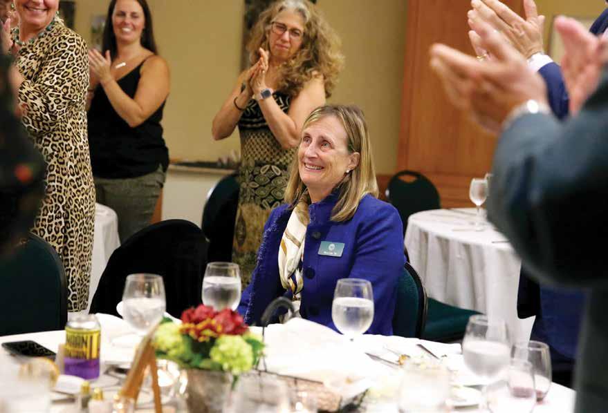 in search of a lost ball. Following this anecdote, which was met with equal parts laughter and applause, he presented Cole with a set of brand-new bright green tennis balls to remedy his fruitless attempt at retrieval years ago. Bringing a refreshing mix of humor, wisdom, urgency, and generosity to her volunteer leadership work, Cole exhibited a selflessness and perseverance