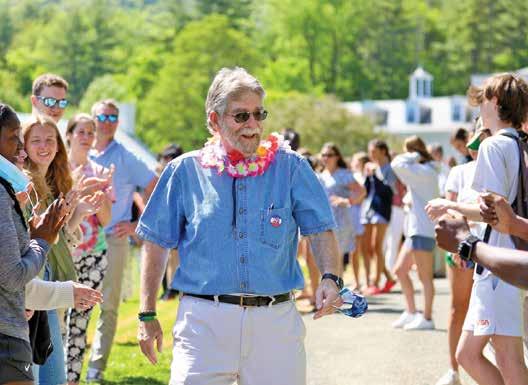 On May 25, students, faculty, and staff gathered to recognize five long-serving members of the Berkshire School community who retired this year. To honor their combined 180 years of service, the community formed a gauntlet, starting on the steps of Berkshire Hall and winding down the walkway along Buck Valley. One by one, each was greeted with applause, handshakes, hugs, and high fives. Congratulations on five well-earned retirements!