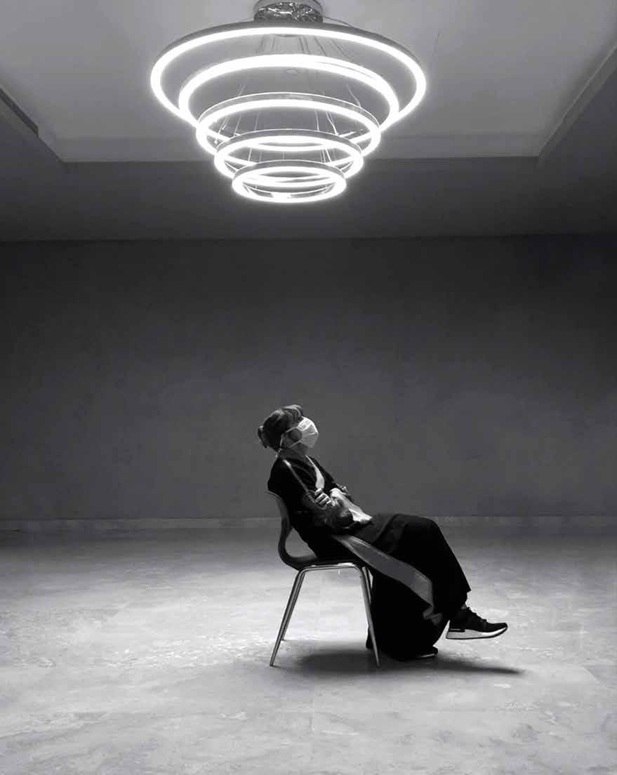 Marco Wilson ’21 took this photo when the pandemic began to shut down the world in March of 2020. As he and his mother attempted to get home to Saudi Arabia at the start of Berkshire’s spring recess, they were forced to quarantine for two weeks in a hotel where Wilson captured this photo of his mom in the hotel’s lobby.