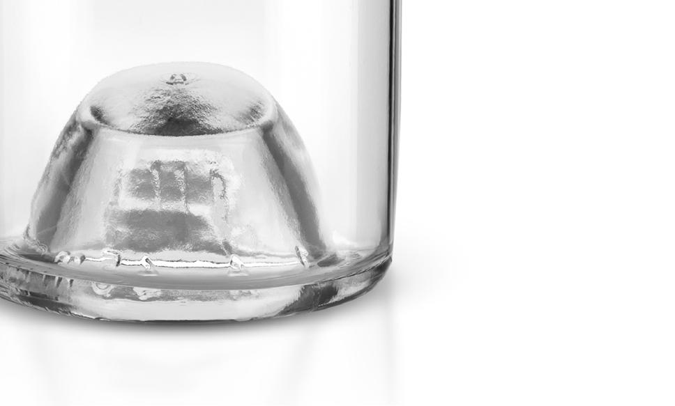Designed for white and rosé wines, Arthur features an elegant push-up, covered with a dotted texture, which creates an array of reflections that make the bottle shine. The soft lines and the large diameter of almost 90 mm help enhance the brightness created. The bartop finish is a perfect match for Vinolok closures, which attracts the attention and elegantly elevate the product.
