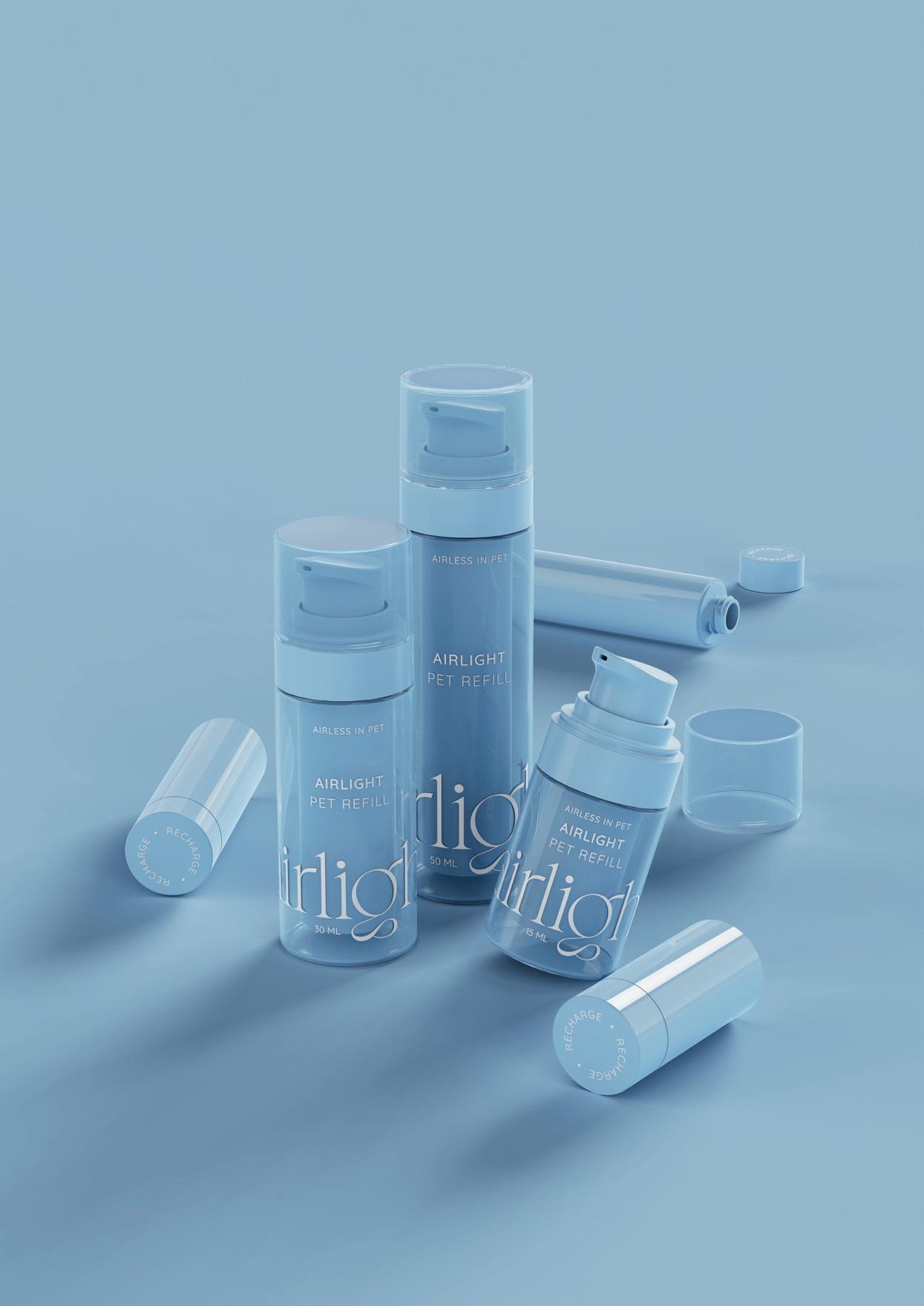 Reusable & Refillable: Airlight PET Refill allows the PET bottle to be reused. Customers can reuse the outer packaging and refill it with only one gesture, thanks to the innovative mechanism designed by Berlin Packaging Beauty.