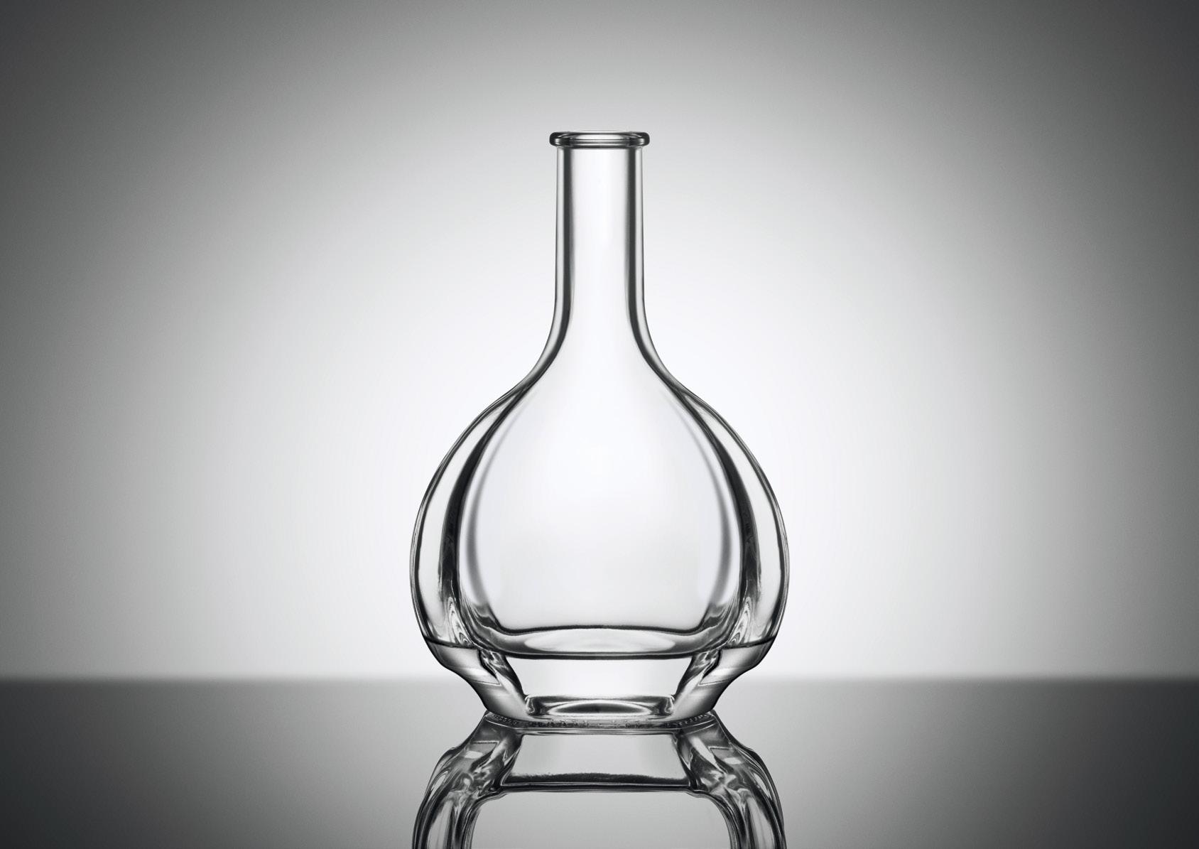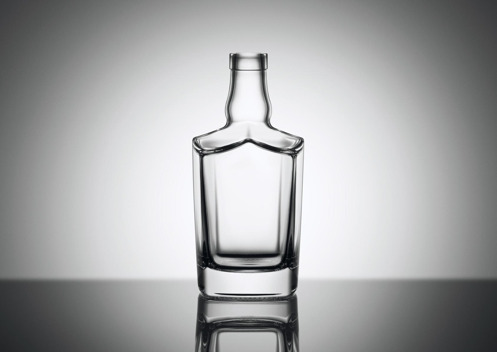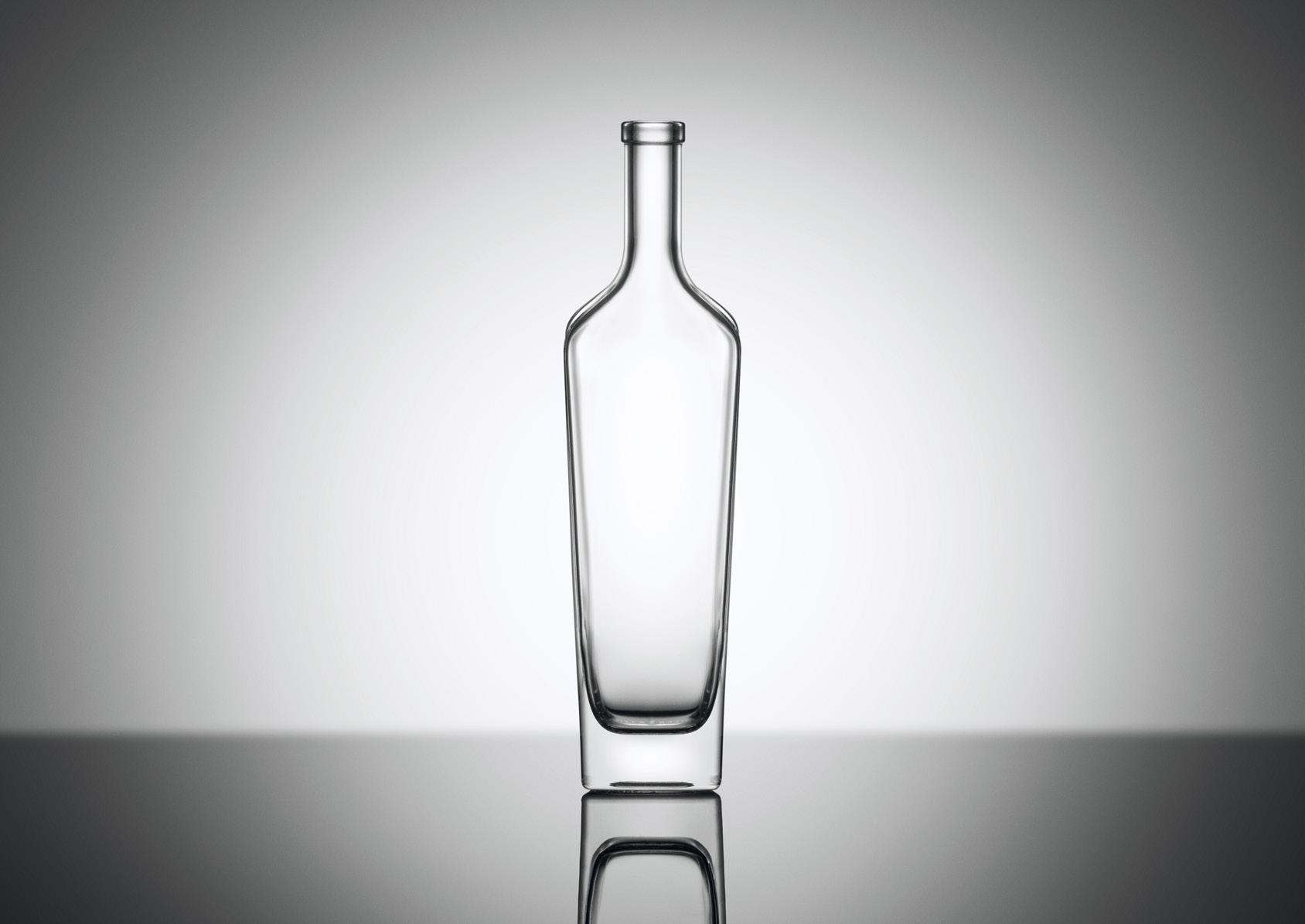Preciosa botella, noble, real: la silueta cuadrada afinada por las sinuosidades del cuello confiere singularidad y prestigio a este packaging especial para destilados de gama alta, dignos de un rey.