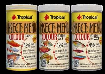 • Ryby zyskują intensywne wybarwienie dzięki innowacyjnej formule Tropical’s Colour Booster, opartej na naturalnych karotenoidach.