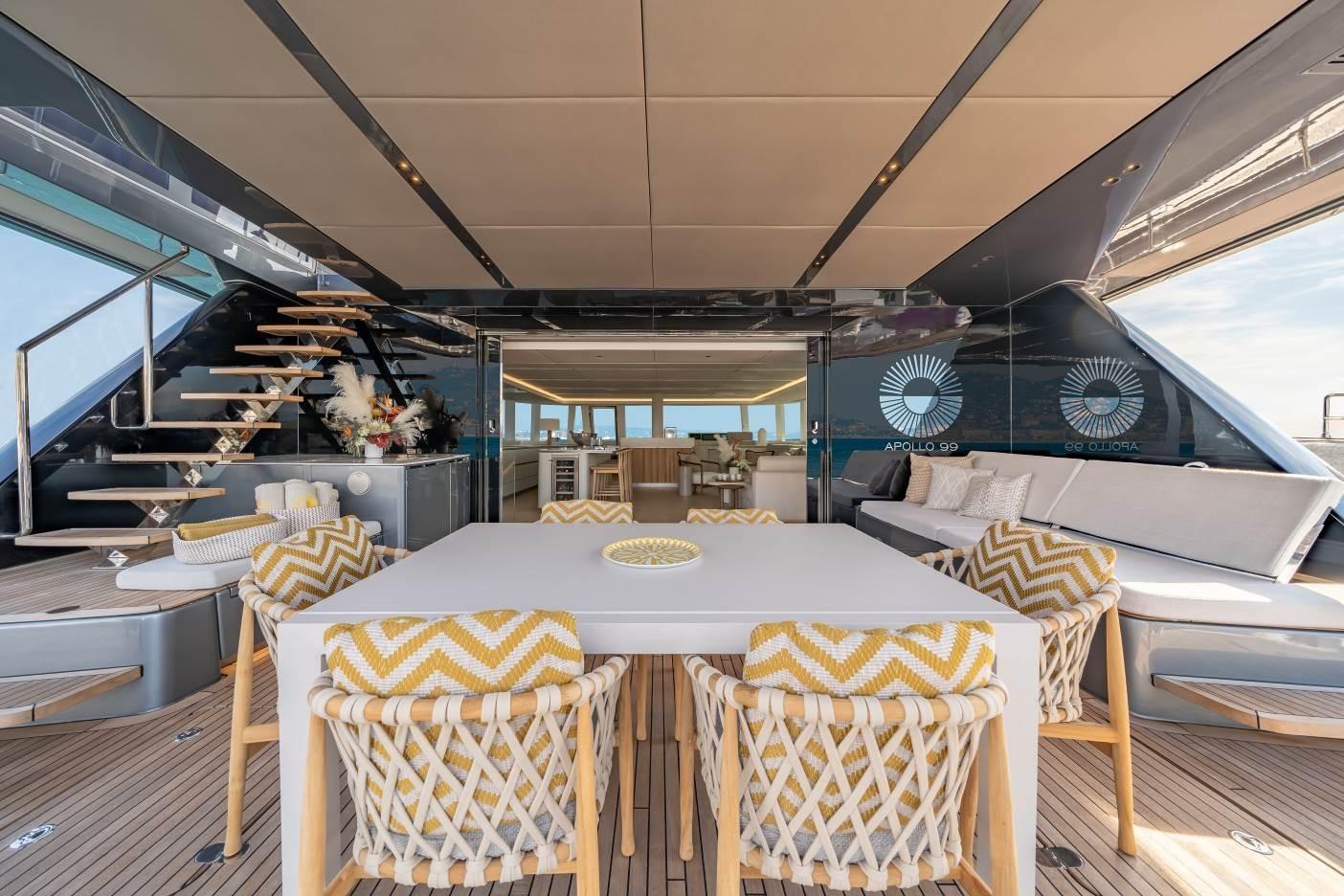 APOLLO 99’s generous 23.87m length and 11.53m beam, intelligent design, accommodation for up to 8 guests, and ecologically sound navigation are all testaments of the nautical innovation of the Polish Shipyard Sunreef Yachts.