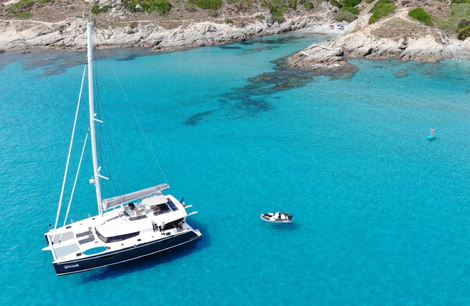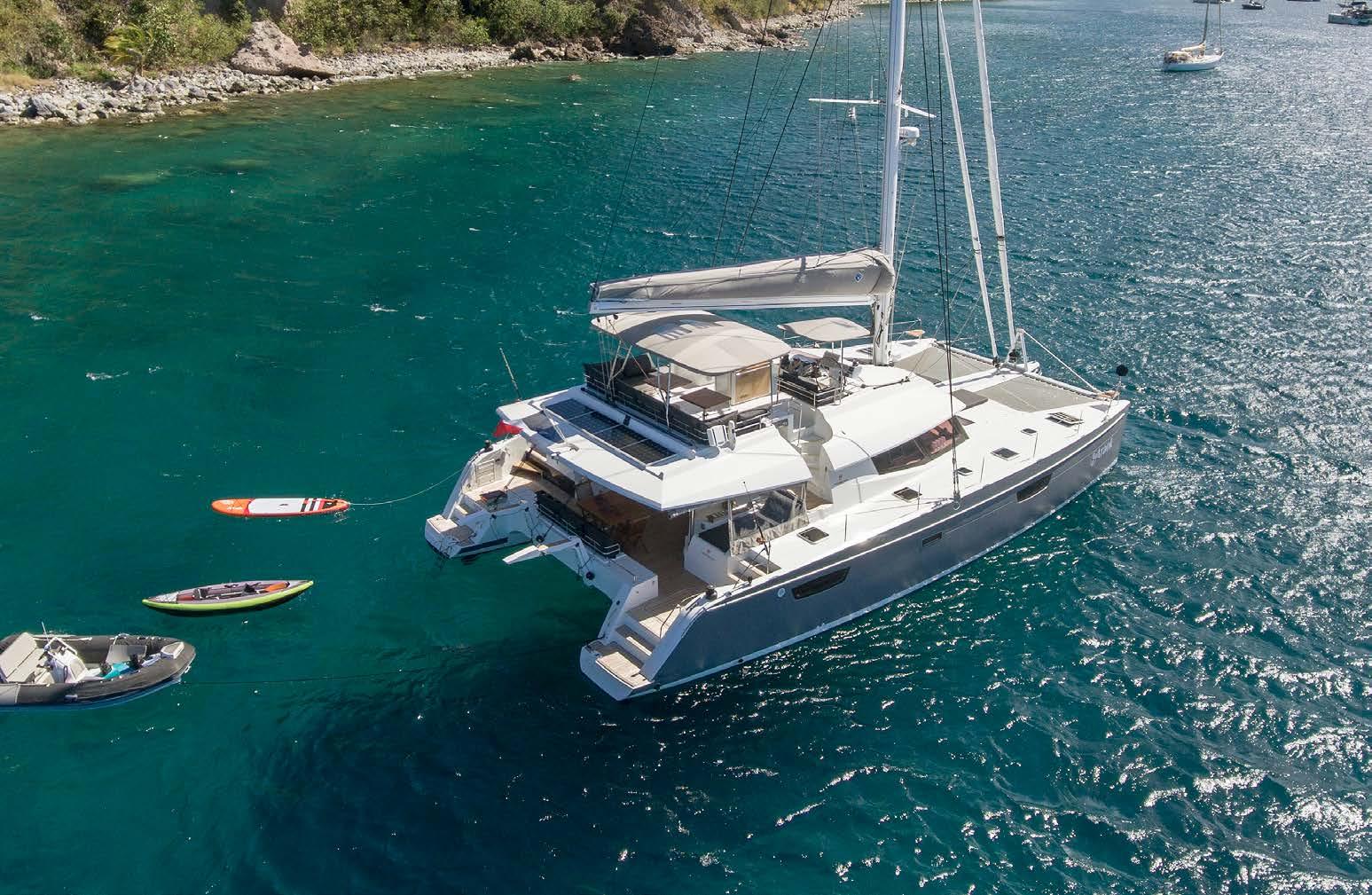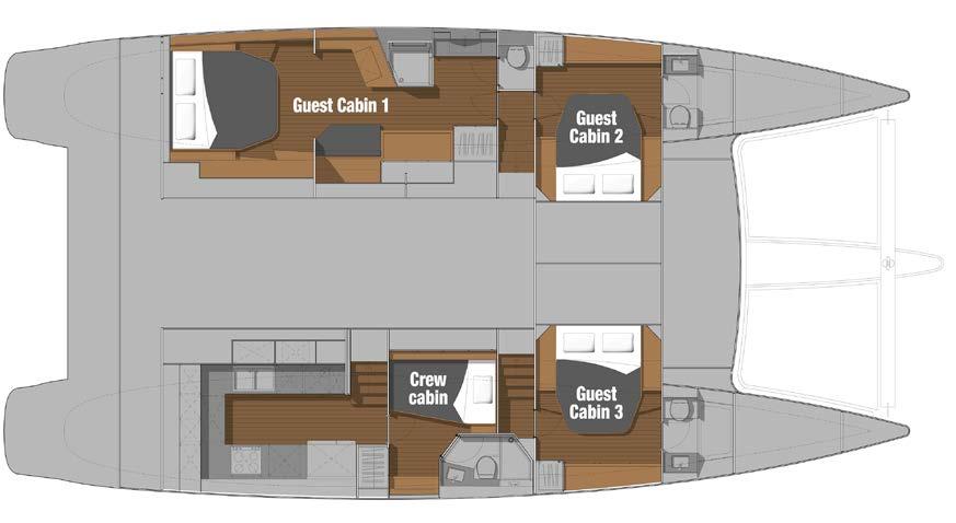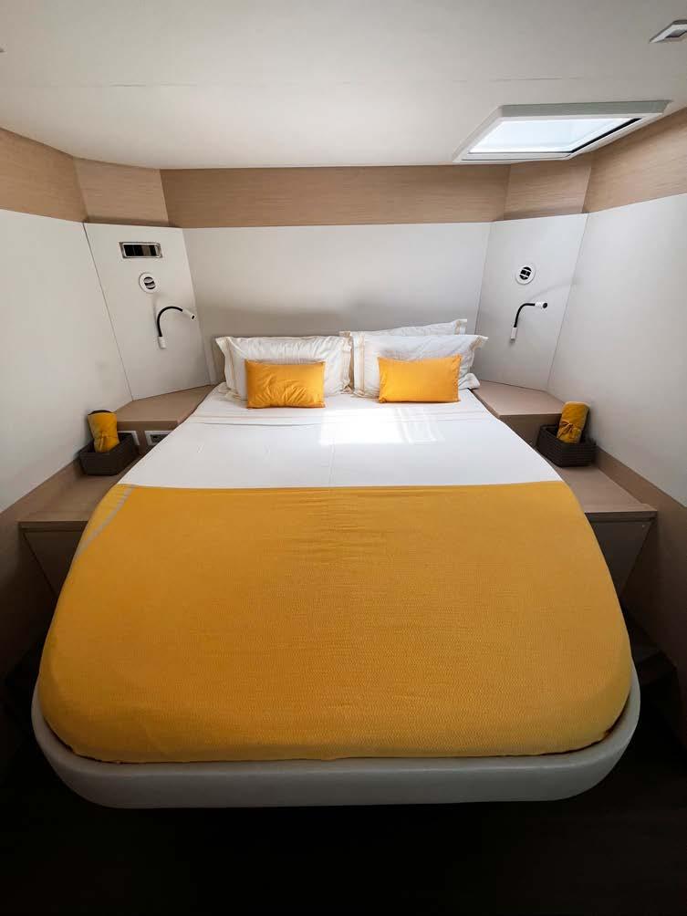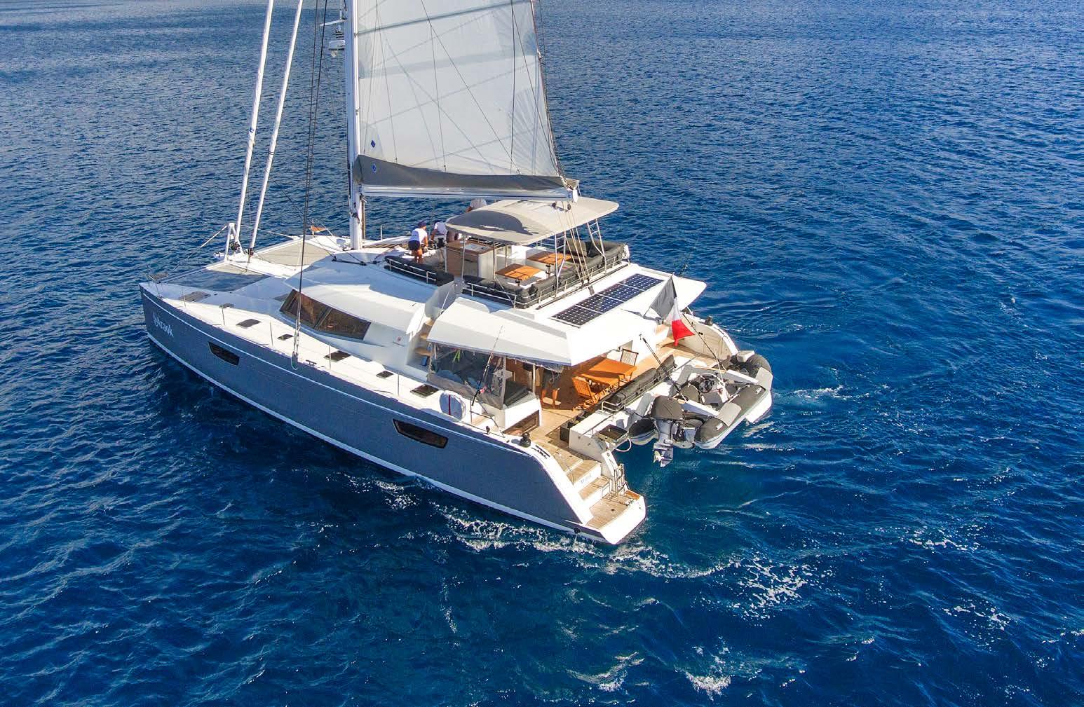 This cruising catamaran includes the largest flybridge on the market, with dual access points to deliver safe and convenient movement onboard. This visionary yacht will seduce you with its luxuriously appointed interior, contemporary fixtures, and choice of innovative layouts, including an epicurean galley connected to the spacious saloon or a true Lounge version.