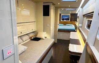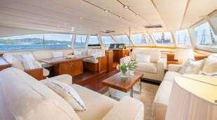 This Lobster 65 is a safe and reliable vessel: she is able to cruise peacefully on all waters. Well maintained by her owner, her 3 cabins can host up to 6 of your family and friends in full serenity. As a very welcoming and spacious unit, OLYMPIC MARITIME has a great sunbathing area at the front of her deck.