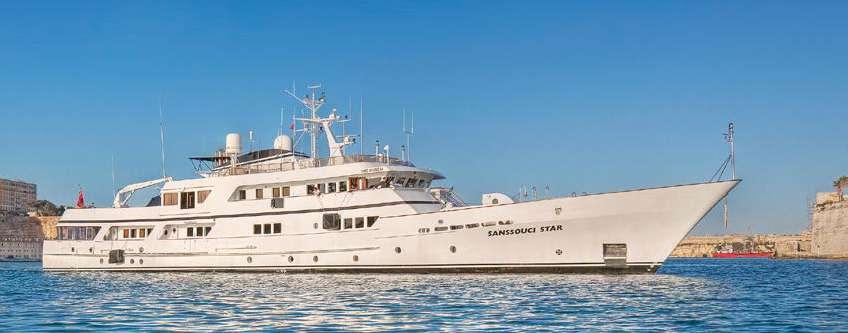 The motor yacht SANSSOUCI STAR is one of the few remaining truly traditional super yachts available on the market. Just as suited to coast-hopping as she is to long distance cruises, SANSSOUCI STAR is spacious enough to accommodate up to 12 passengers in 7 double cabins (convertible into 7 twin cabins). This elegant and classic motor yacht is a perfect base for both relaxation and activities, whether that be at port or at sea. Her crew is under the command of a Danish captain and a Dutch passenger manager. SANSSOUCI STAR underwent an extensive 6 months refit in 2019 to get her RINA Class renewed.