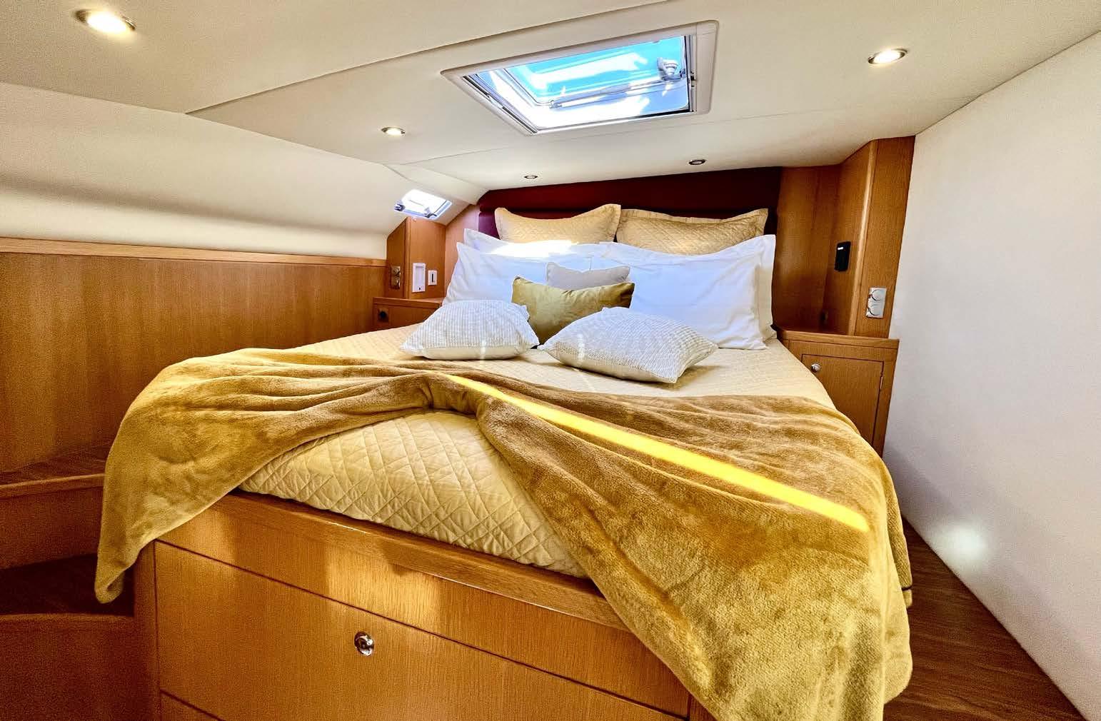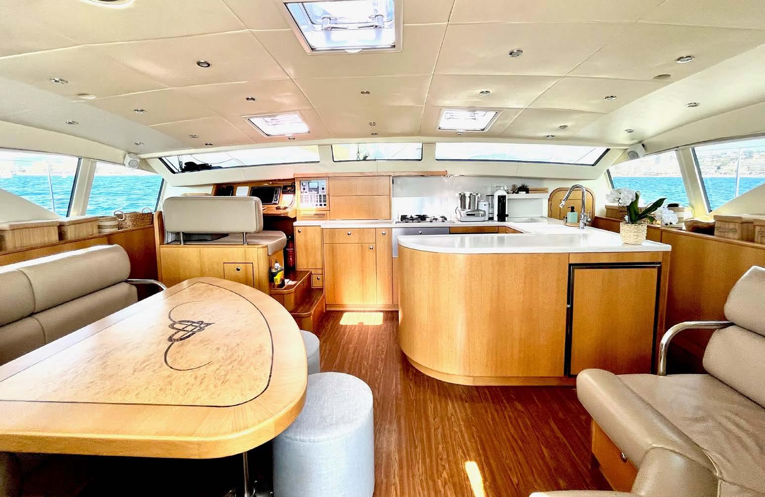In the salon, you will find two roomy leather seating areas and the galley, where you can marvel as the Chef creates your next 5-star meal or one of her famous cocktails – sure to put you in the holiday mood!