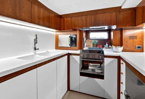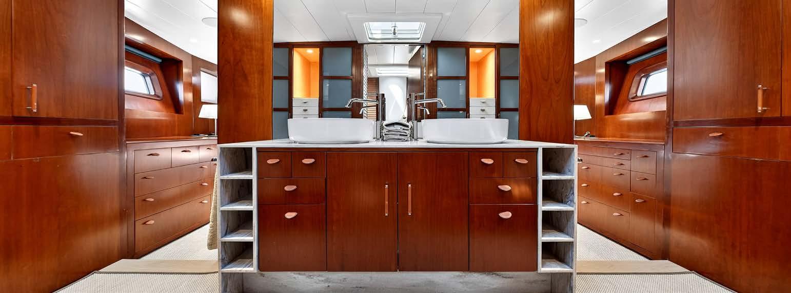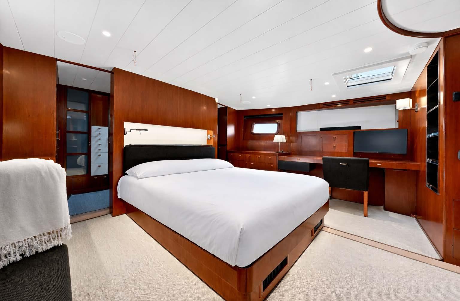 The master cabin of FREE AT LAST is very spacious with plenty of storage and space to relax. The kitchen is located the opposite end of the yacht to avoid any disturbances for guests on board. Amongst the professional crew, an experienced chef will be able to cater to any dietary requirement and create fresh exciting dishes.