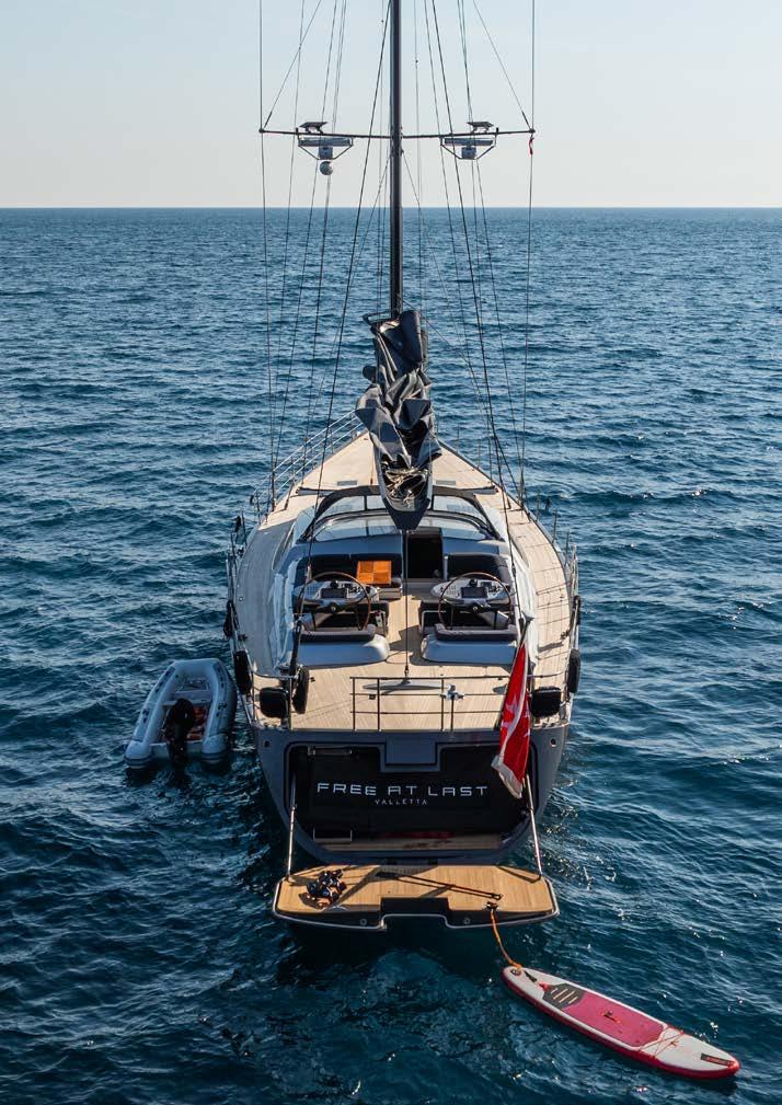 FREE AT LAST (ex CONCORDIA) was constructed in 2000 by the shipyard Custom Line in Spain as a luxury sailing yacht. Refit in 2025, her interior and exterior reflect a sense of both comfort and performance as designed originally by Marcelo Penna.
