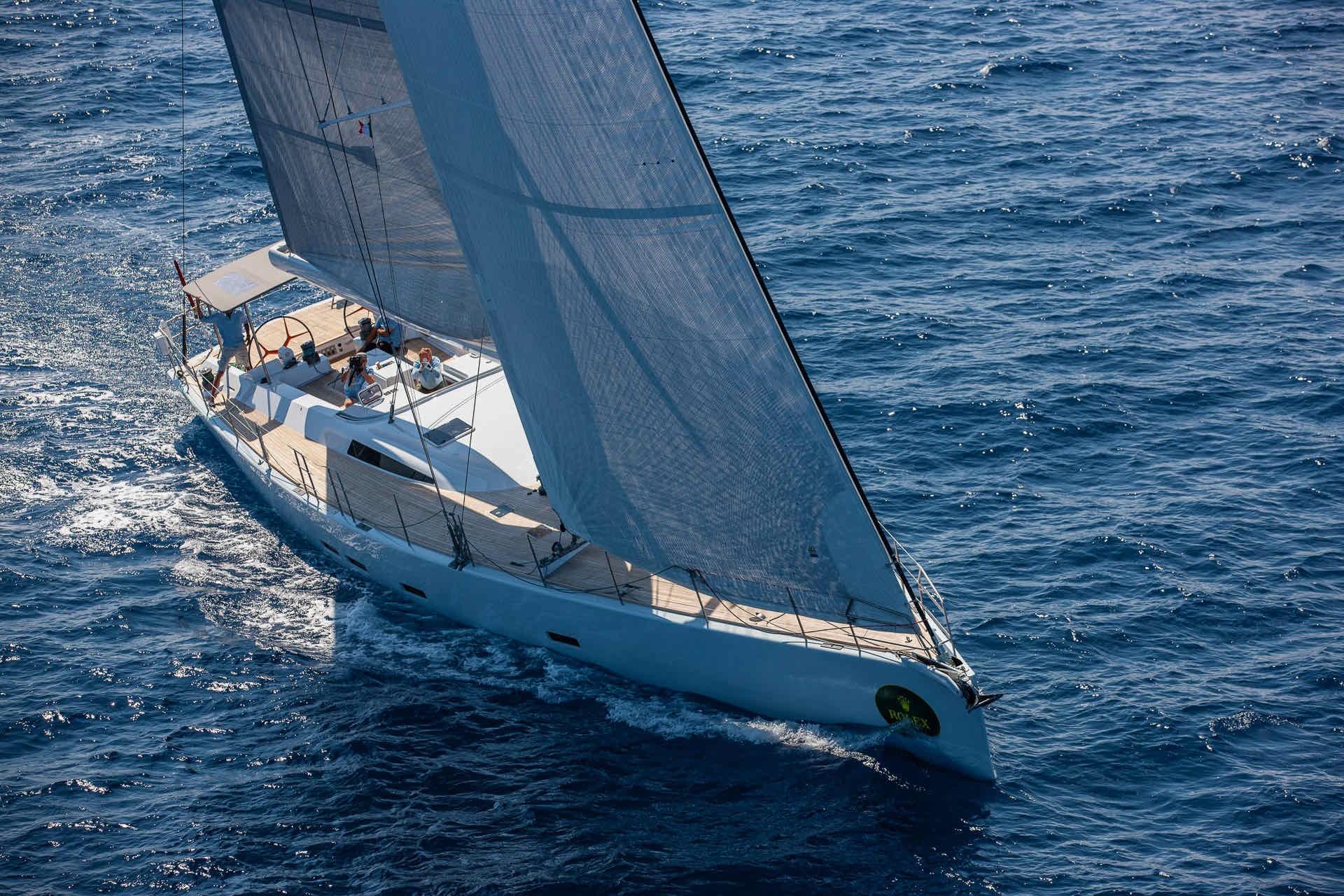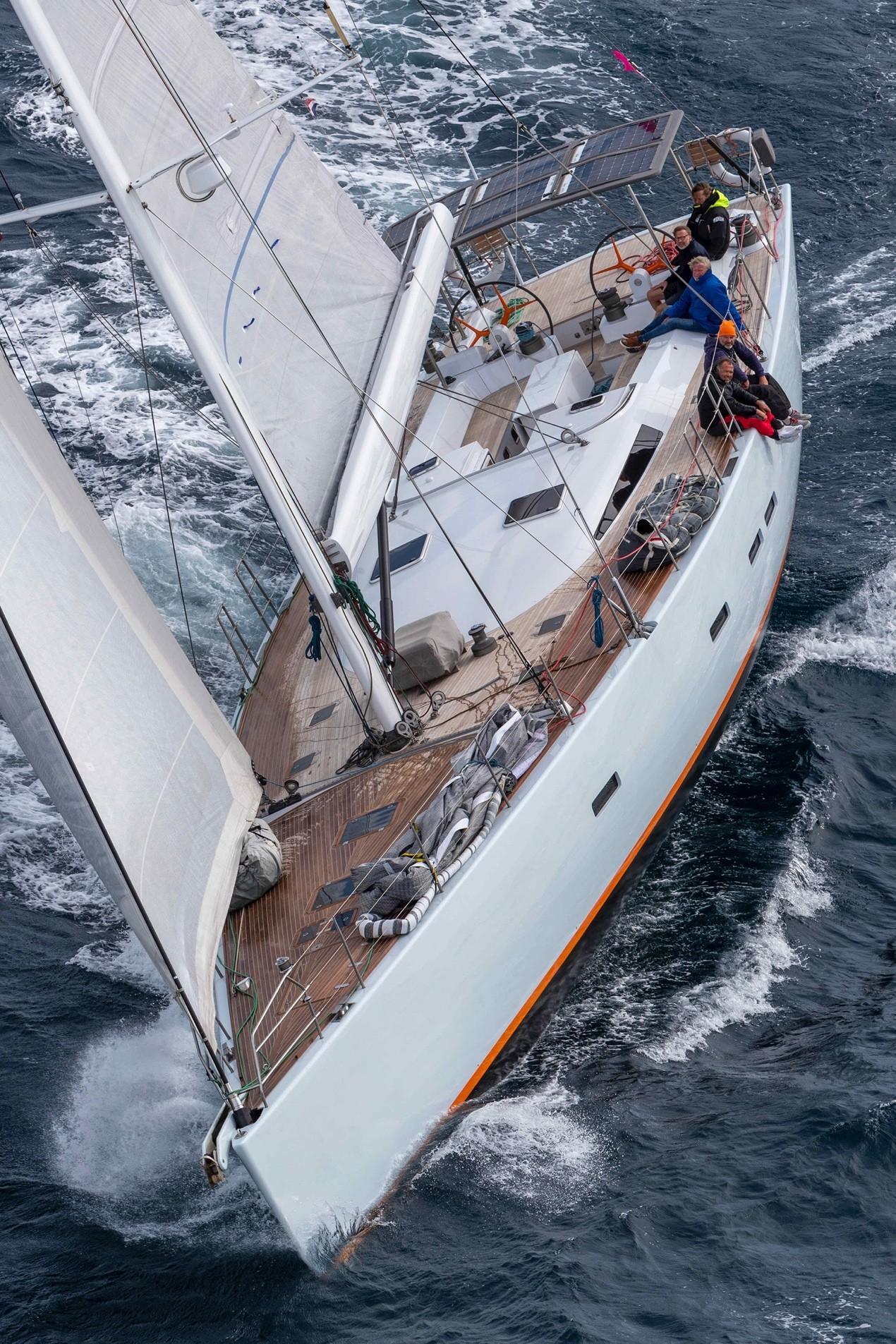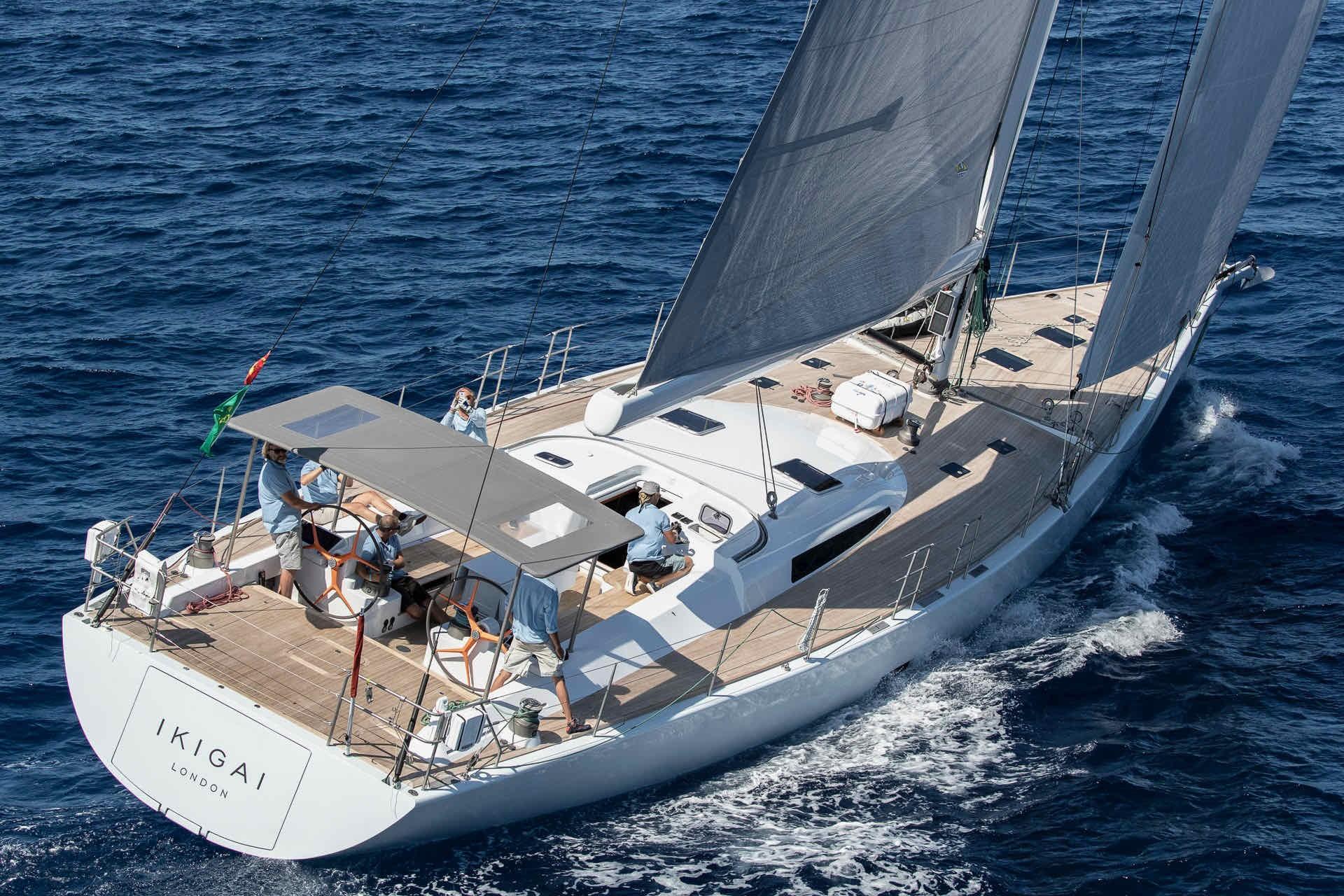 The spacious, modern and welcoming interior is fashioned from clear varnished teak. The large master cabin and two guest cabins are situated forward. Amidships are the spacious saloon and dining room. Behind the companionway you will find, to port, the brand-new high-tech navigation station, the chart table and the crew cabin; and to starboard, the galley and crew mess. The transom opens to give access to the garage where the tender is stored. Sailing Ikigai is an absolute joy: sensational to helm, she is simply fantastic upwind.