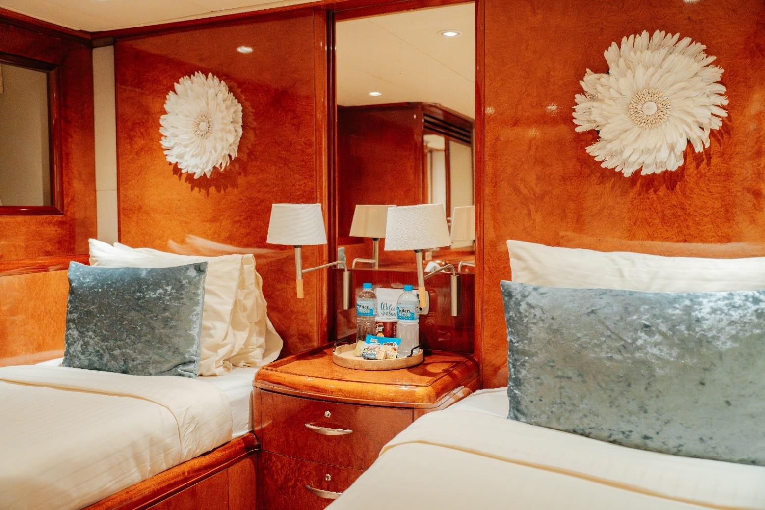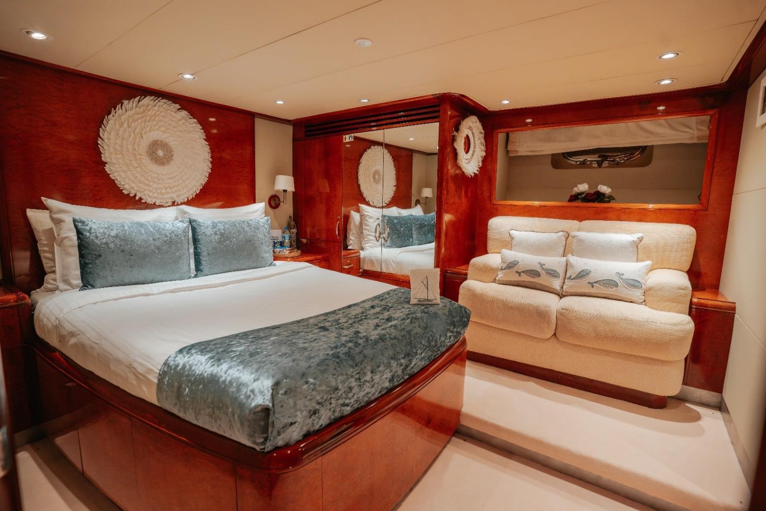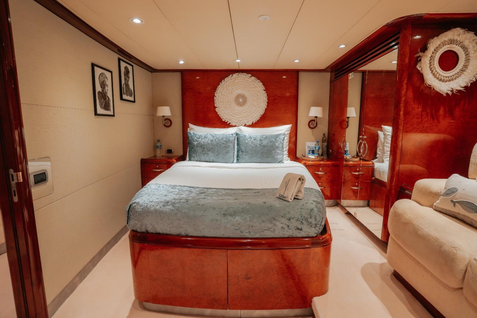Large and spacious double bed cabin aft with a king-size walk-around bed