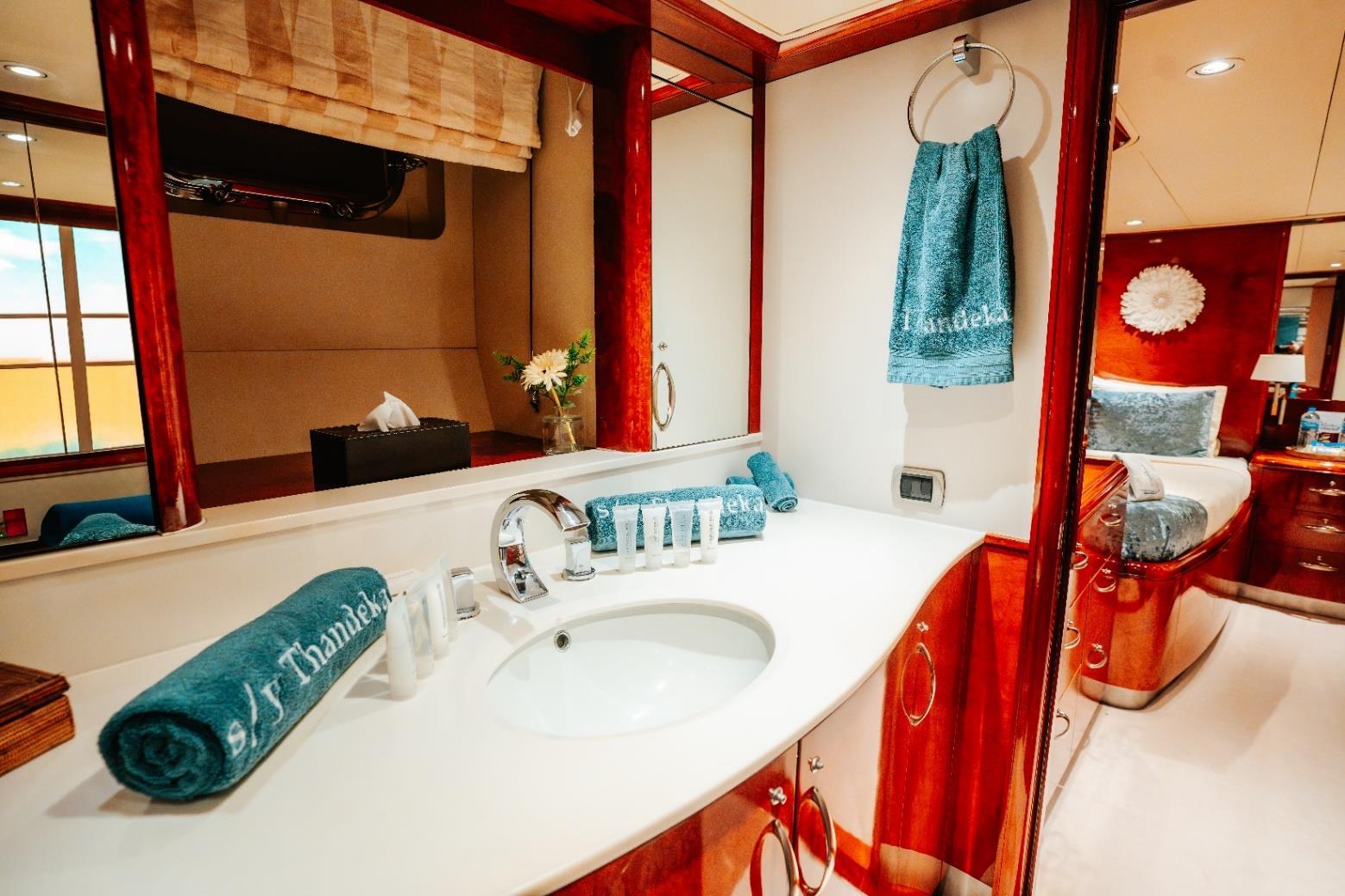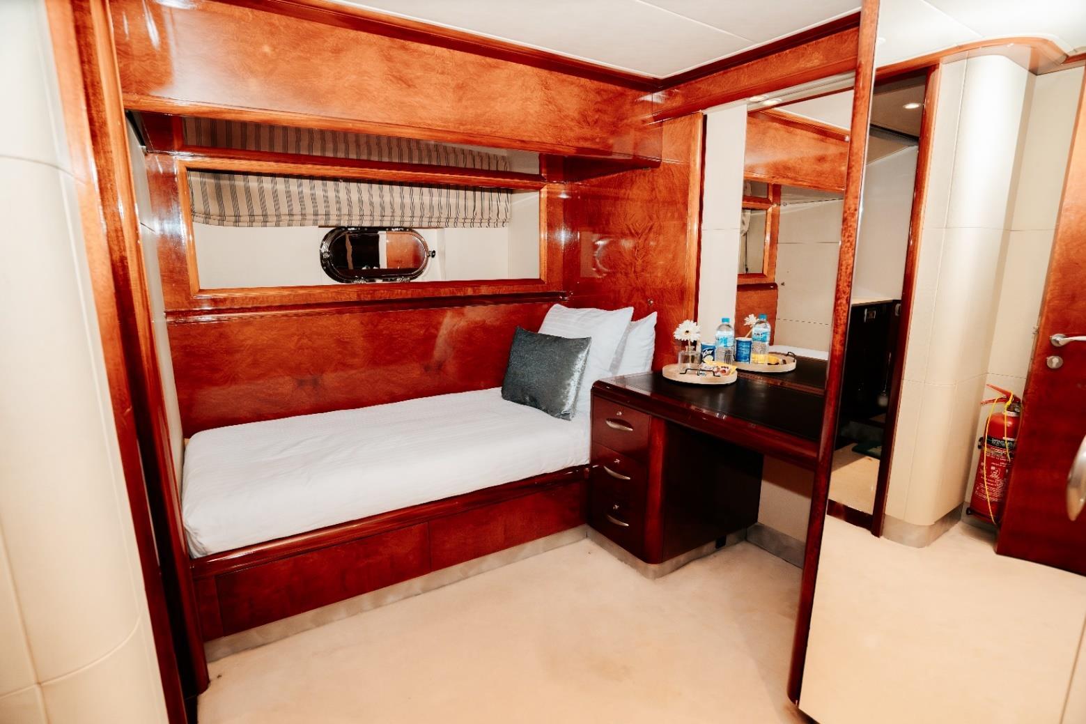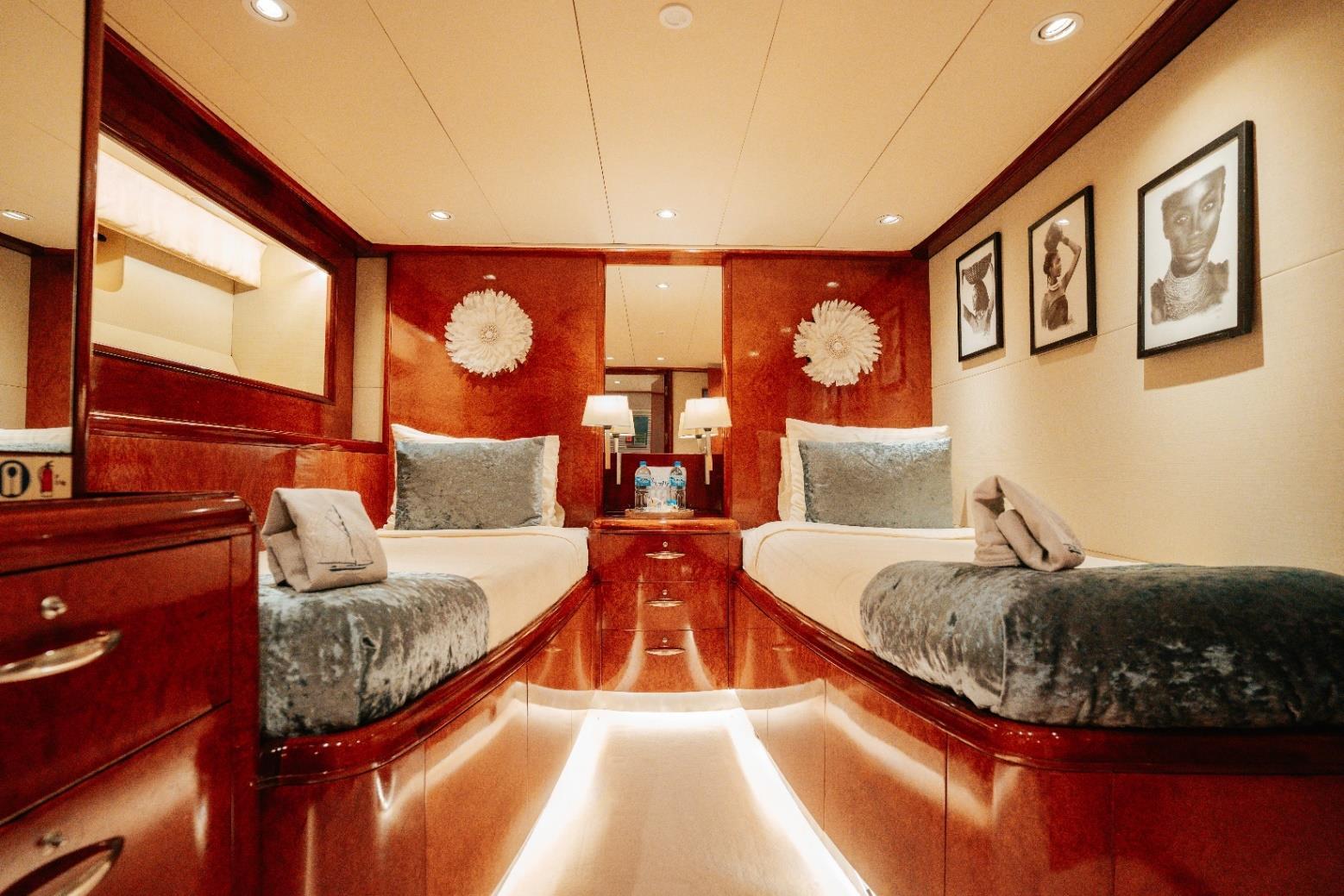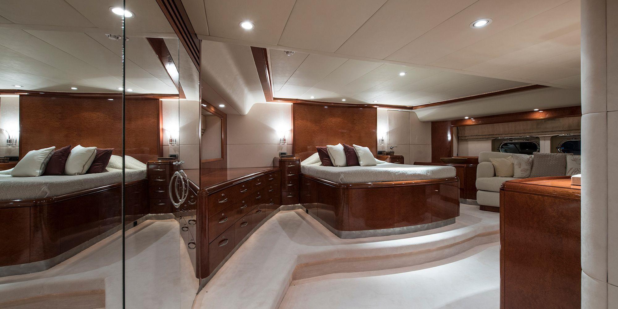 Large and spacious double bed cabin aft with a king-size walk-around bed